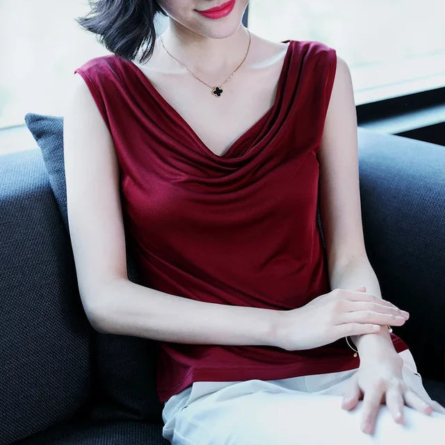 Das 'Anna' Satin Wasserfall-Top vereint Komfort mit High-Fashion-Design und ist somit die perfekte Wahl für die selbstbewusste Frau, die in jeder Situation glänzen möchte.