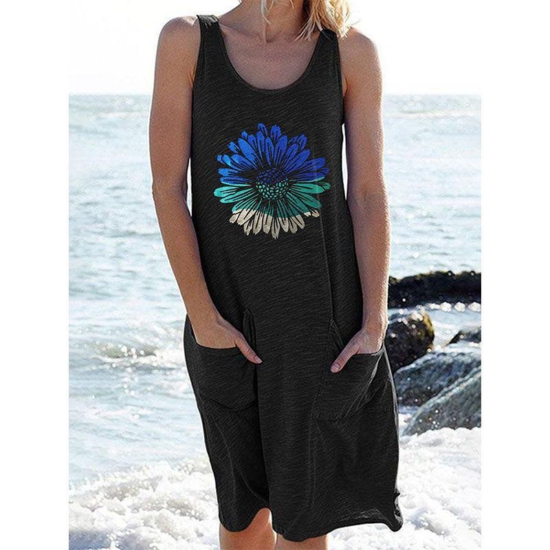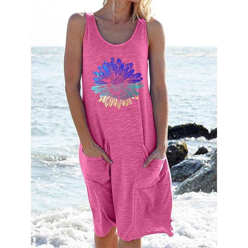Bedrucktes ärmelloses Strickkleid Langes Freizeitkleid