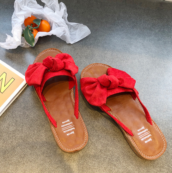 Beige Pantoletten mit Schleife - Clara