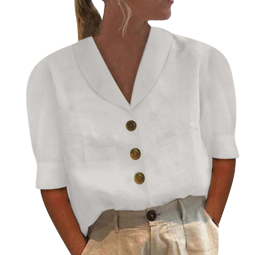 Bella - Weißes Leinenhemd mit Knopfdetails