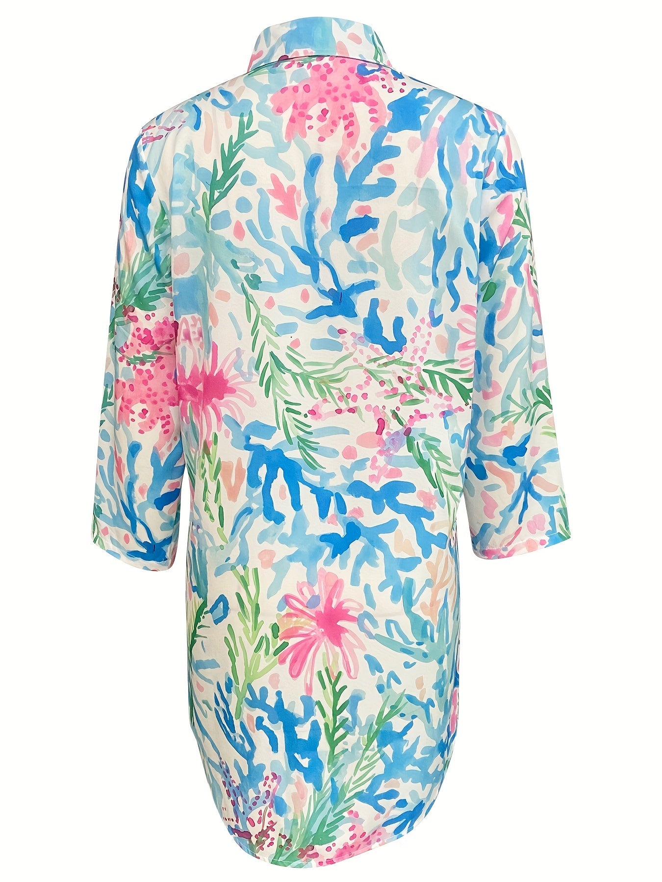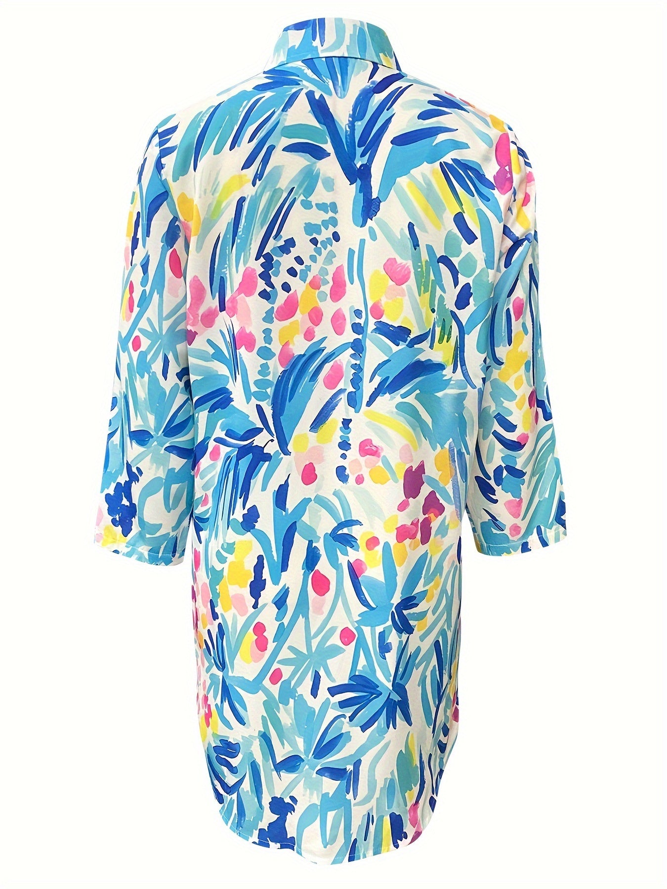 Fühlen Sie sich frisch und modisch im Bunten Kurzarm-Hemdkleid - Marlene. Dieses lebhaft bedruckte Kleid ist die perfekte Wahl für sonnige Tage und Urlaubsabenteuer.