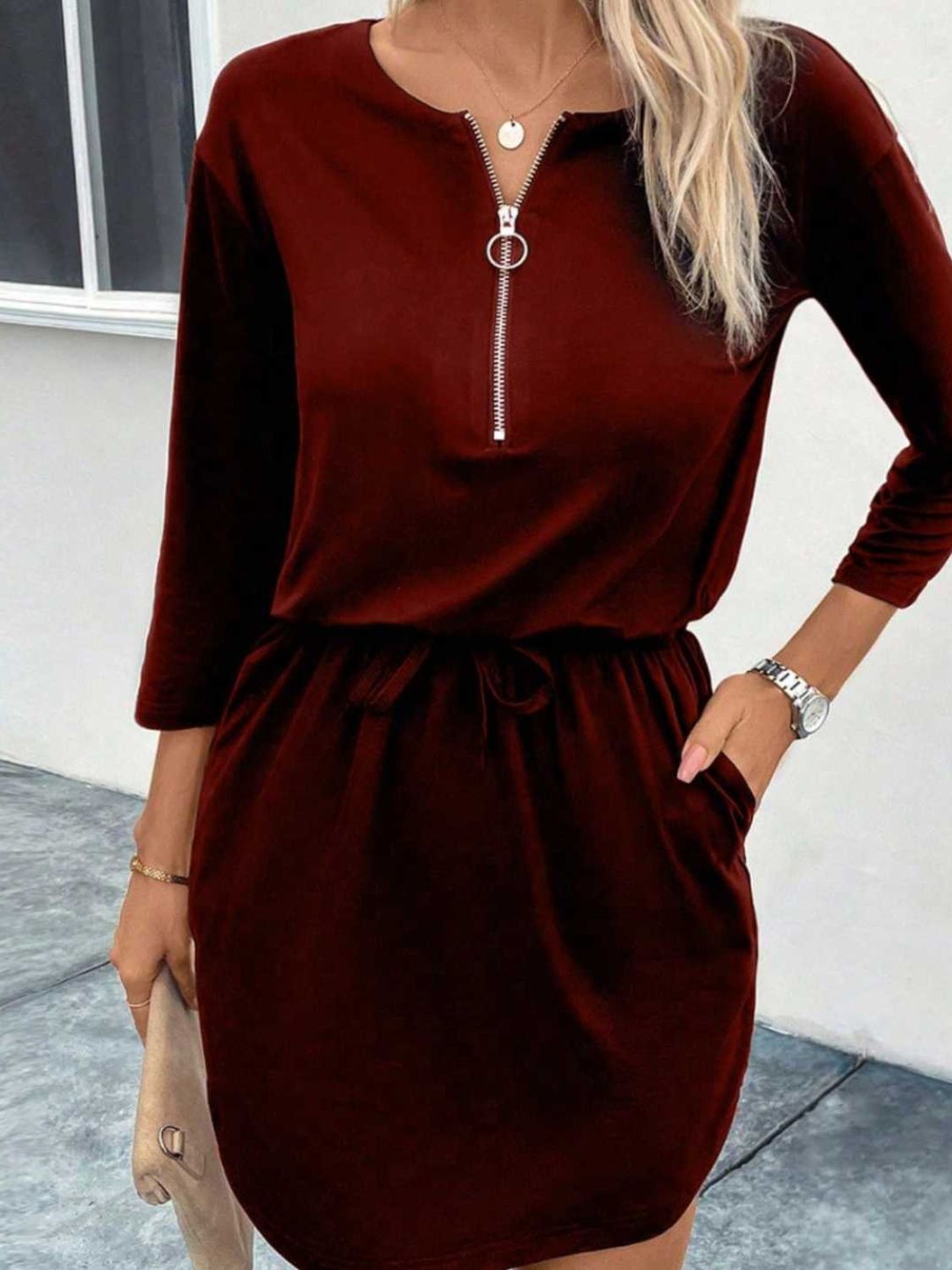 Charmantes Reißverschluss-Dekolleté Kleid mit Taillenband