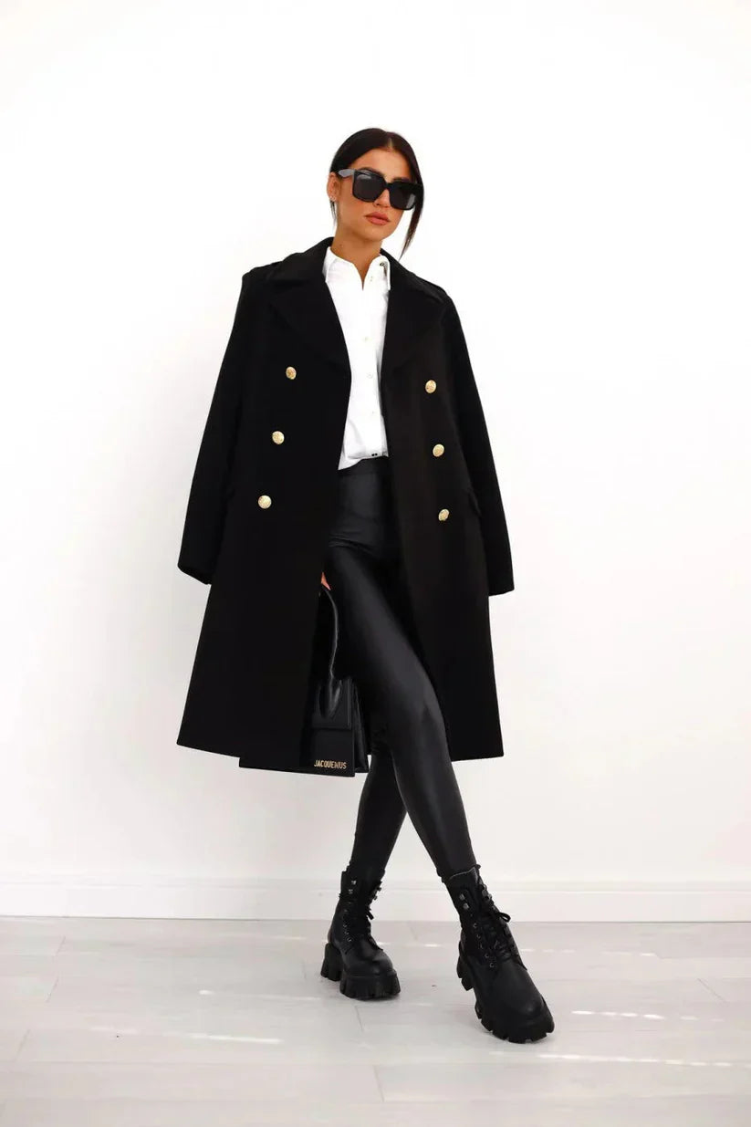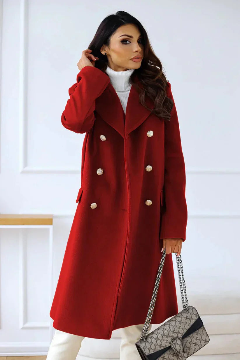Clara – langer wollmantel mit reverskragen und tailliertem schnitt