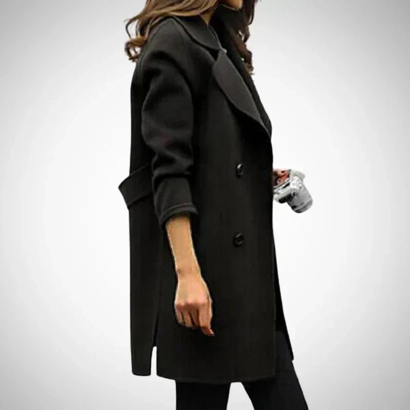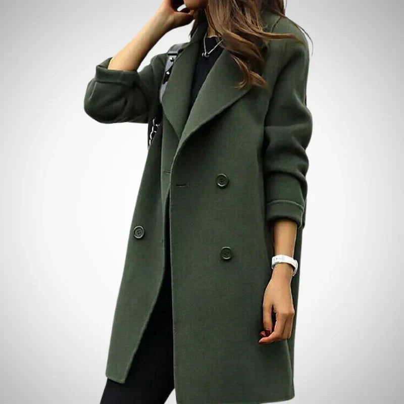 Eleganter zweireihiger Damenmantel – Dieser Mantel verleiht Ihrer Wintergarderobe eine raffinierte Note. Mit seinem zeitlosen zweireihigen Design , der eleganten Silhouette und dem angenehm warmen Tragegefühl ist er perfekt für den Alltag oder festliche Anlässe geeignet und sorgt dafür, dass Sie die ganze Saison über stilvoll, selbstbewusst und warm gekleidet sind.
