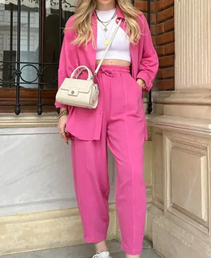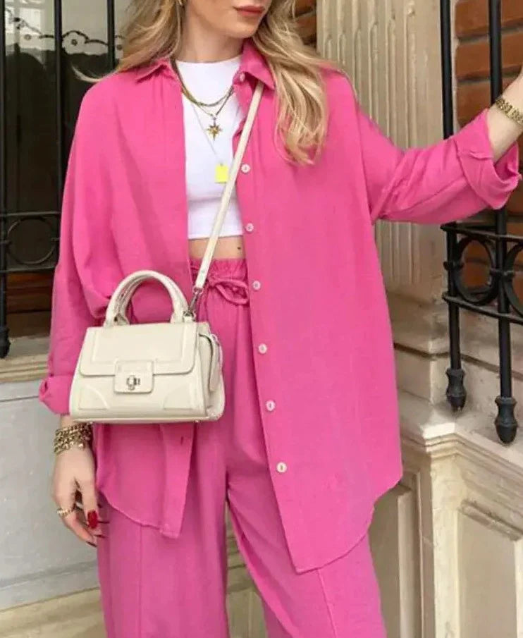 Zeitloses Design für jede Gelegenheit: Ob beim Einkaufen, im Café oder bei einem gemütlichen Treffen mit Freunden – mit diesem Set sind Sie immer passend gekleidet.