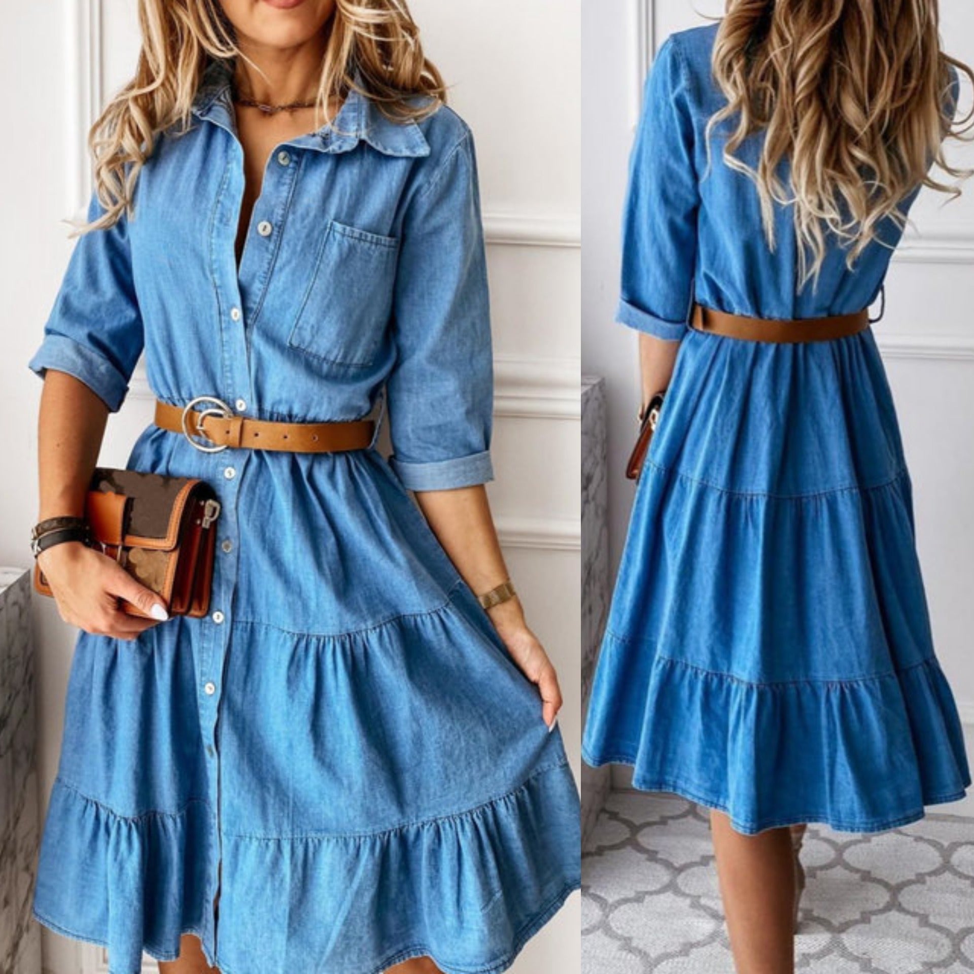 Emilia | Jeanskleid mit Volant – ein charmantes Kleid aus leichtem Denim, veredelt mit femininen Volants für eine verspielte Note. Ideal für lässige Sommerlooks, City-Ausflüge oder entspannte Alltagsmomente mit Stil.
