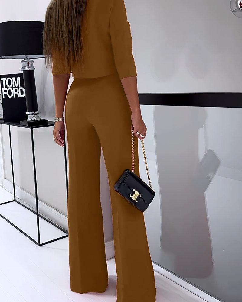 Perfekte Passform trifft Komfort- Unser Set kombiniert Stil mit Komfort, angefertigt aus einem luxuriösen Stoff, der sich sanft an Ihre Figur anschmiegt. Die hochtaillierte Hose mit ausgestelltem Bein zaubert eine schmeichelhafte Silhouette und die schlichte Eleganz des Oberteils macht dieses Kleidungsstück zum idealen Begleiter für jeden Anlass, sei es ein lässiger Tag am Strand oder eine stilvolle Cocktailparty.