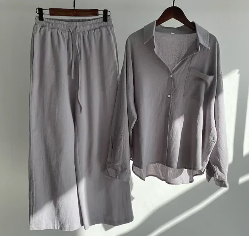 Wir stellen vor: Geneve , Sommerliches Leinen-Set, ein luftiges Leinen-Ensemble, perfekt für warmes Wetter. Dieses stilvolle Set zeichnet sich durch ein leichtes und atmungsaktives Design aus und bietet Komfort und Eleganz für jeden lässigen Sommeranlass. Ideal, um cool und schick zu bleiben.