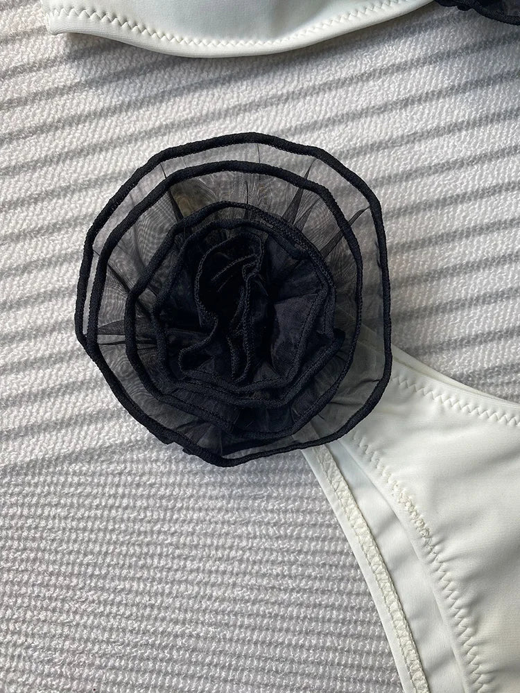 Ein Hauch von Eleganz am Strand, dieser gestreifte Bikini mit Rosendetail vereint Stil mit Komfort. Das monochrome Streifenmuster sorgt für einen zeitlosen Look, während die kunstvollen Rosenapplikationen jedem Outfit eine romantische Note verleihen.