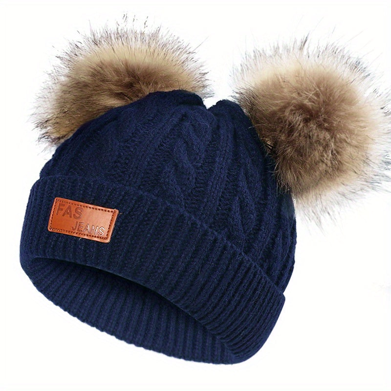 Gestrickte Mütze mit Doppelpompons und dickem Futter