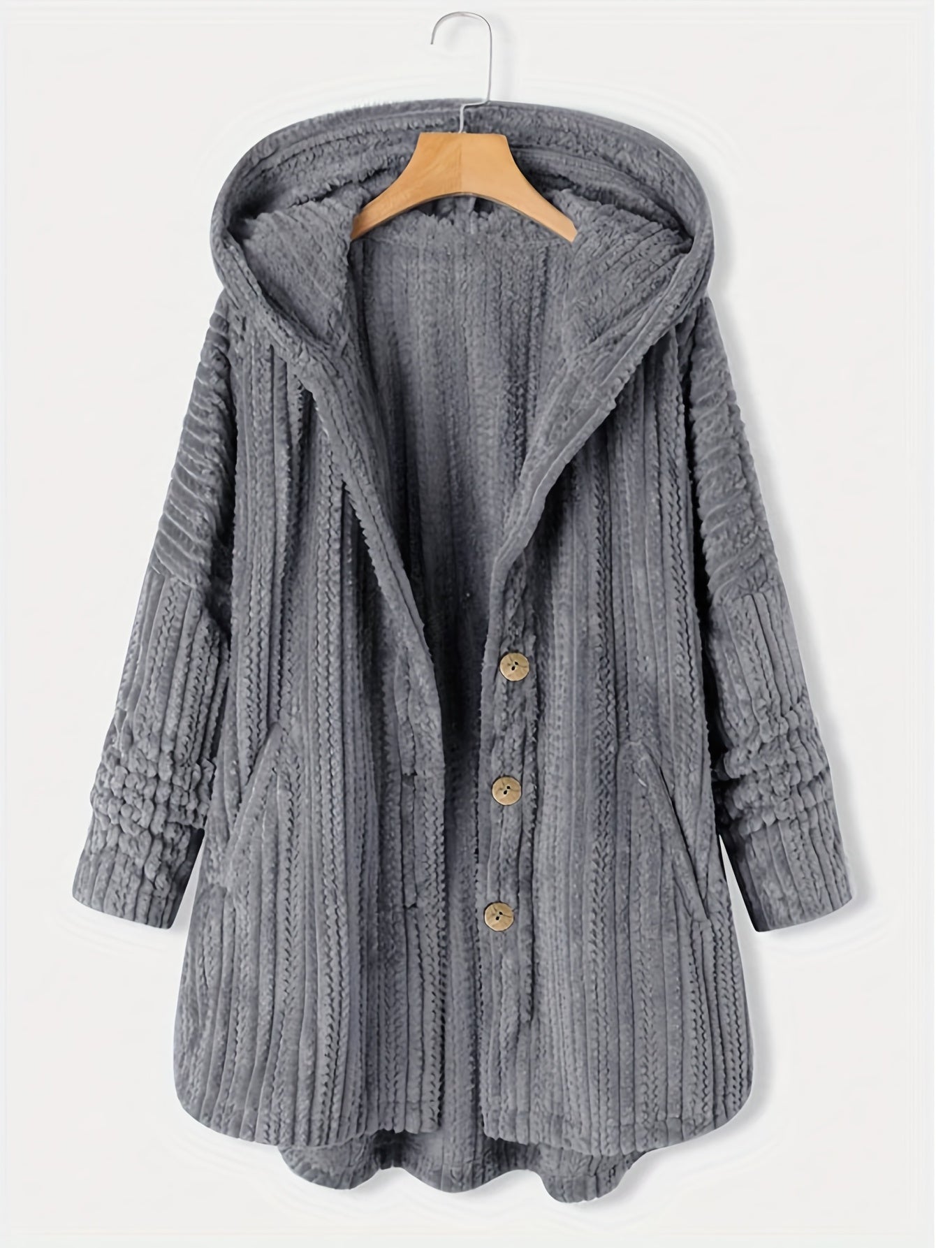 Grauer Kapuzenmantel mit Knöpfen - Lara