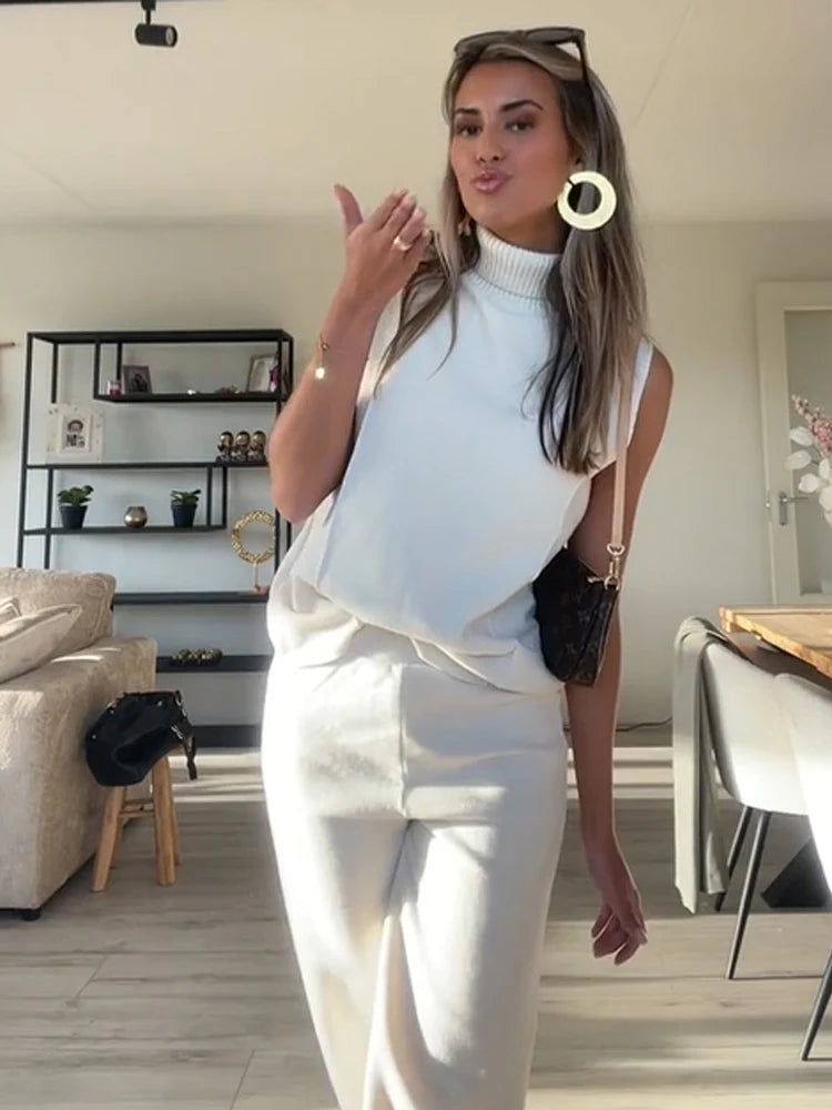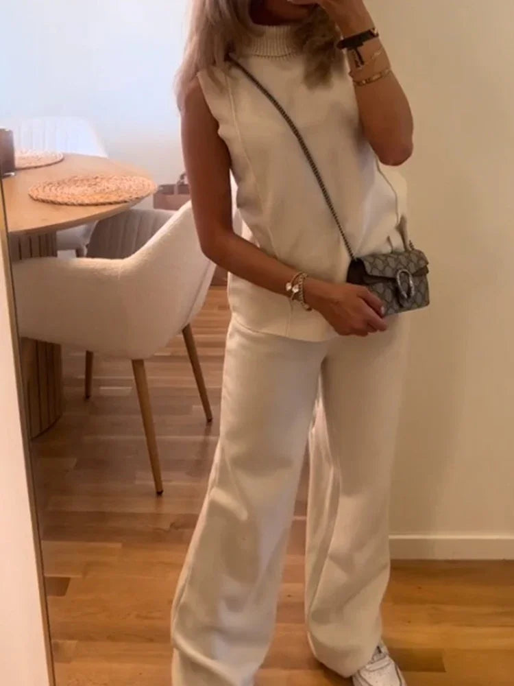 Unvergleichliche Vielseitigkeit und Stil: Das ärmellose Top schmiegt sich sanft an, während die locker geschnittene Hose mit elastischem Bund eine komfortable Passform garantiert. Das Set strahlt subtile Eleganz aus, sodass Sie überall stilsicher und selbstbewusst auftreten können.