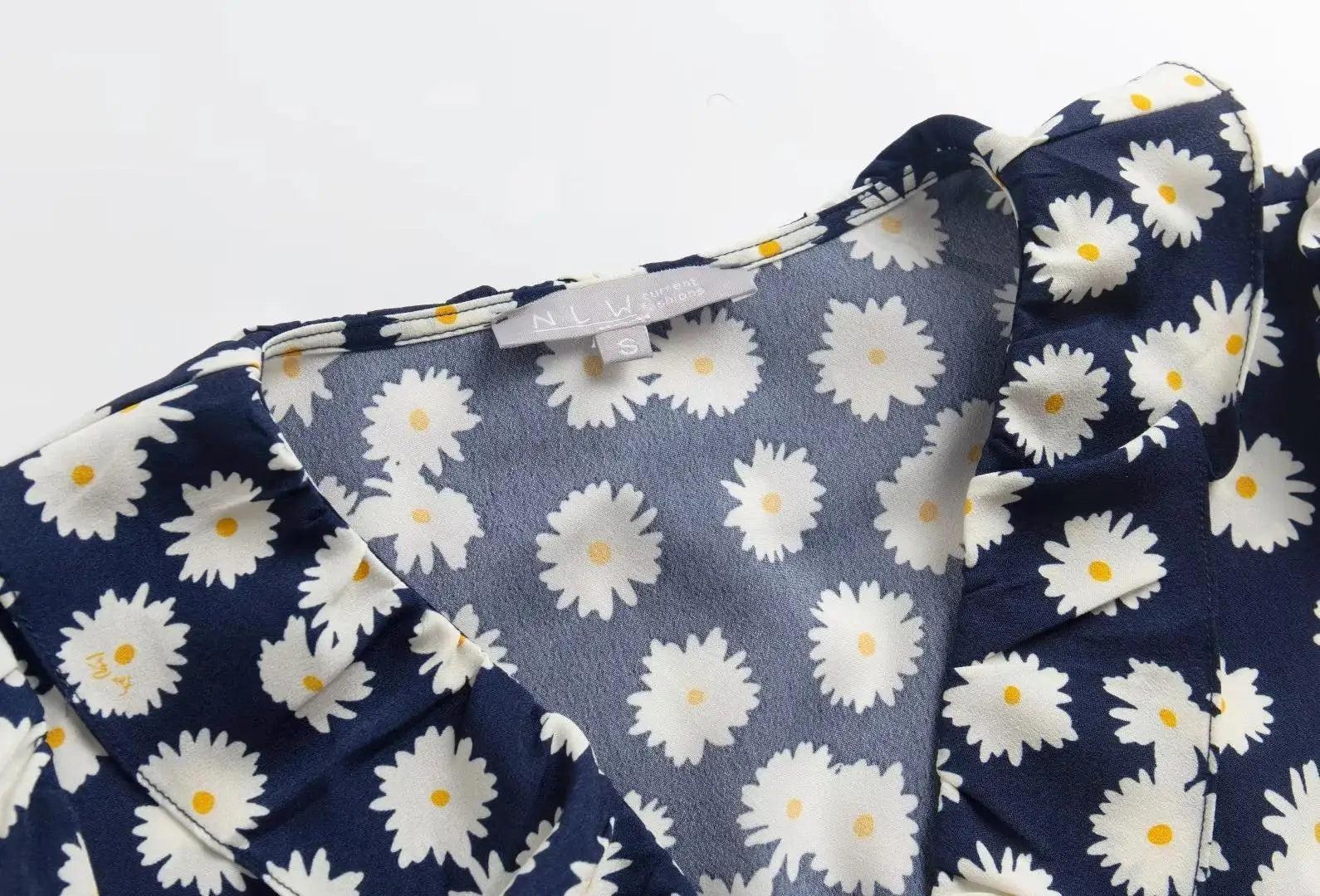 Schick und verspielt: Das "Greta - Marineblaues Rüschen-Wickelkleid" kombiniert Eleganz mit spielerischer Leichtigkeit. Der charmante V-Ausschnitt und die Rüschen am Saum verleihen diesem Kleid eine feminine Note, ideal für sommerliche Tage und festliche Anlässe.