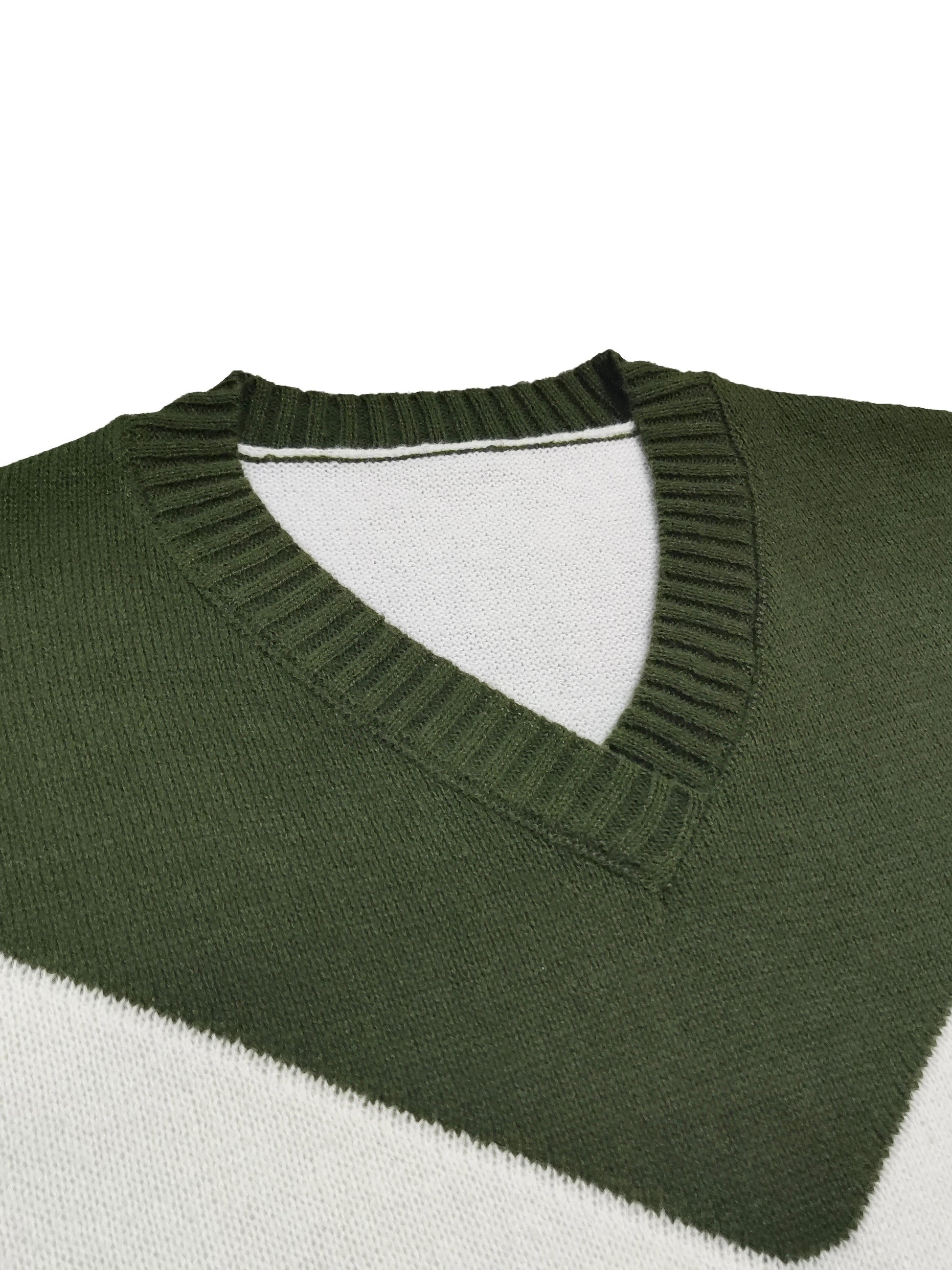 Setzen Sie ein modisches Statement mit dem Grünen V-Ausschnitt Colorblock Pullover. Dieser trendige Pullover vereint lässigen Stil und Eleganz – perfekt für Frauen, die modisch auffallen und dennoch bequem gekleidet sein möchten.