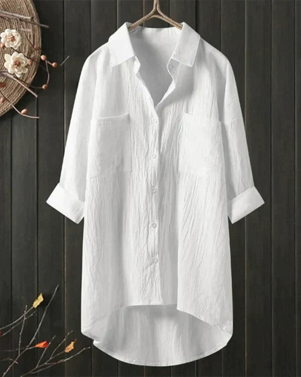 Zeitloser Chic- Das Blusenkleid kombiniert klassisches Design mit modernem Tragekomfort. Die reine Farbe steht für Zuverlässigkeit und Stärke, während der Schnitt Ihnen die Freiheit gibt, sich zu bewegen und Ihren Tag in vollen Zügen zu genießen. Es ist die perfekte Wahl für Frauen, die Wert auf Stil und Bequemlichkeit legen.