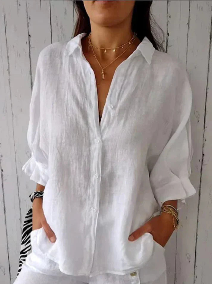 Das Hemd aus Baumwolle und Leinen, im Rücken gebunden, ist die perfekte Wahl für einen stilvollen und lässigen Look. Dieses Hemd besticht durch seine hochwertigen Materialien und die einzigartige Rückenbindung, die eine moderne und schmeichelhafte Silhouette zaubert. Ideal für warme Tage, kombiniert das Hemd Komfort mit einem modischen Akzent.