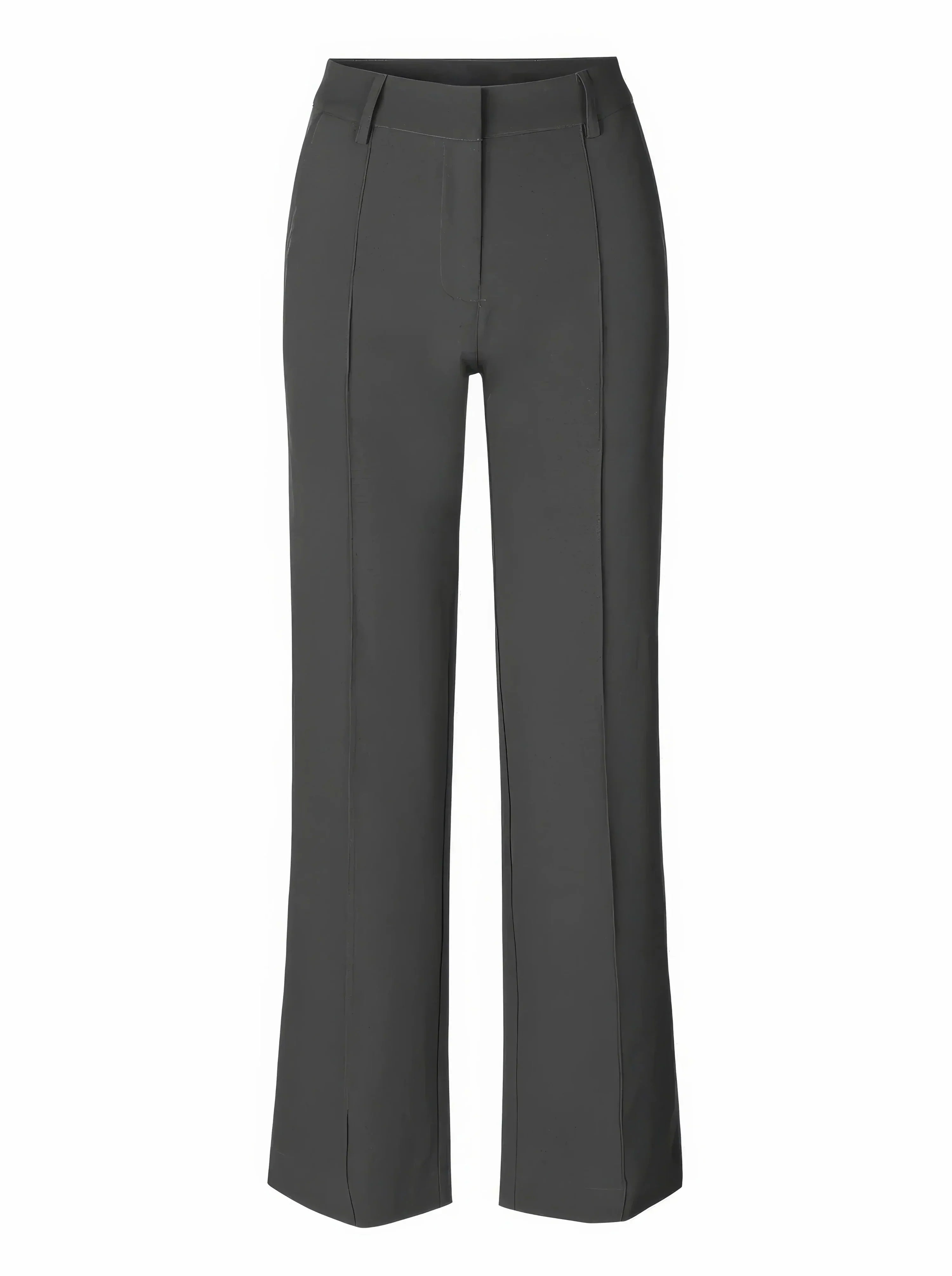 Diese eleganten , hochgeschnittenen Hosen bieten eine schmeichelhafte Silhouette für jeden Anlass. Der hohe Bund sorgt für eine raffinierte Form, während der glatte, taillierte Schnitt sowohl legeren als auch festlichen Outfits eine elegante Note verleiht. Bequem, vielseitig und mühelos stilvoll – ein Must-have für die Garderobe der modernen Frau.
