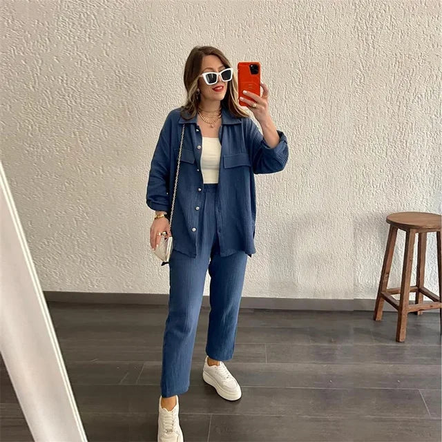 Isabella repräsentiert schlichte Eleganz und modernen Komfort. Dieses 'Beige Cord-Ensemble' vereint klassisches Design mit trendigem Material für einen Look, der sowohl Büro- als auch Freizeittauglich ist.