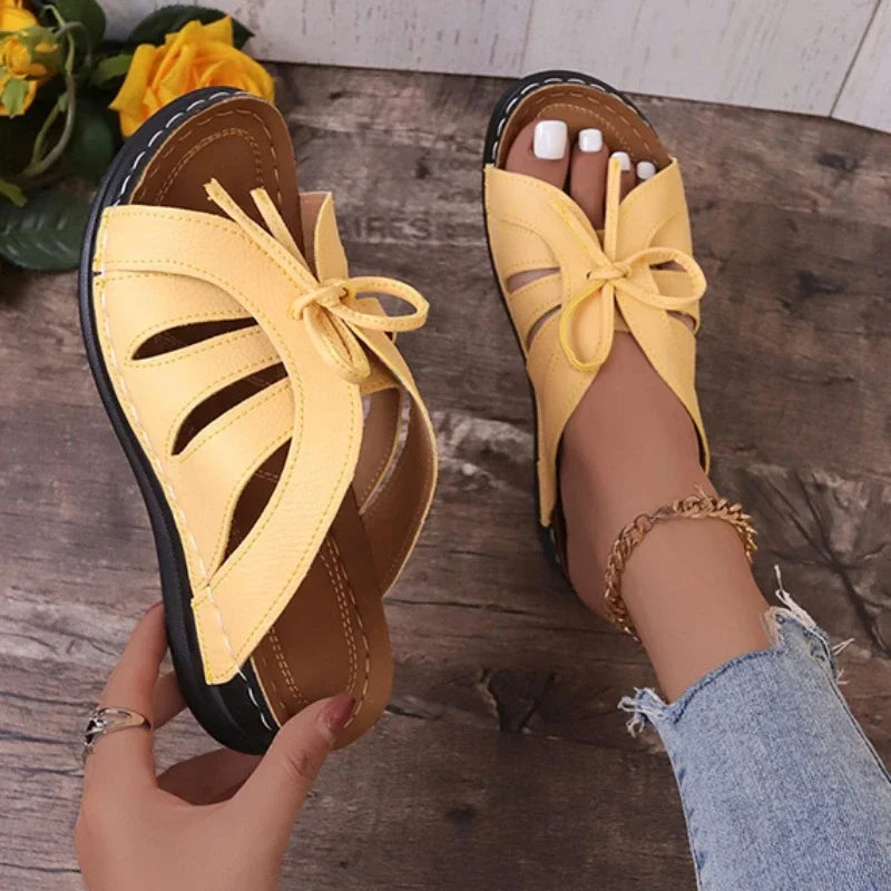Vorteil Überschriften mit Beschreibungen: Leicht und Luftig - Die Julia Sandalen mit ihren verspielten Schnüren bieten ein offenes Design, das perfekt für warme Tage geeignet ist.