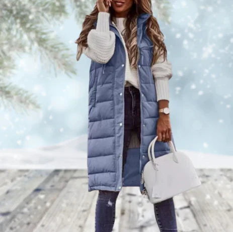 Der lange, stylische Mantel Kora verleiht Ihrer Garderobe zeitlose Eleganz. Gefertigt aus hochwertigem Stoff bietet er eine schlanke Silhouette und eine bequeme Passform für kühlere Tage. Perfekt zum Überziehen über jedes Outfit, verleiht dieser Mantel Raffinesse und Wärme und ist somit ideal für legere und formelle Anlässe.