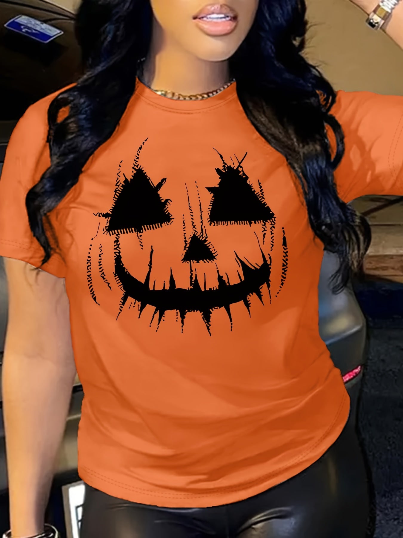 - Gruseliges Kürbisgesicht-Print für den perfekten Halloween-Look