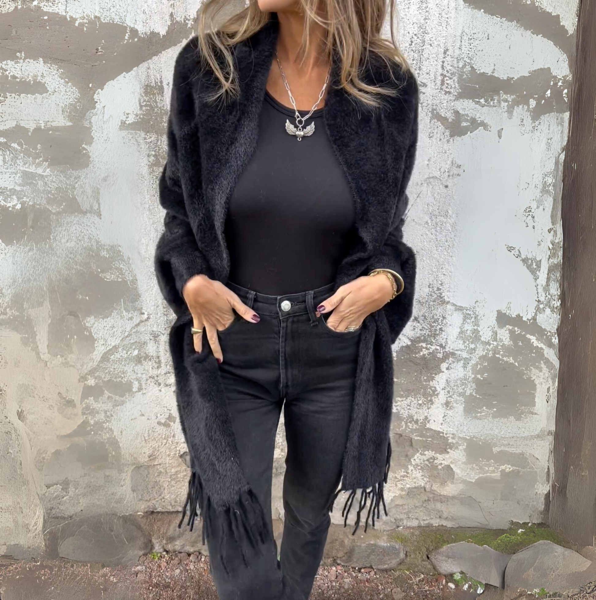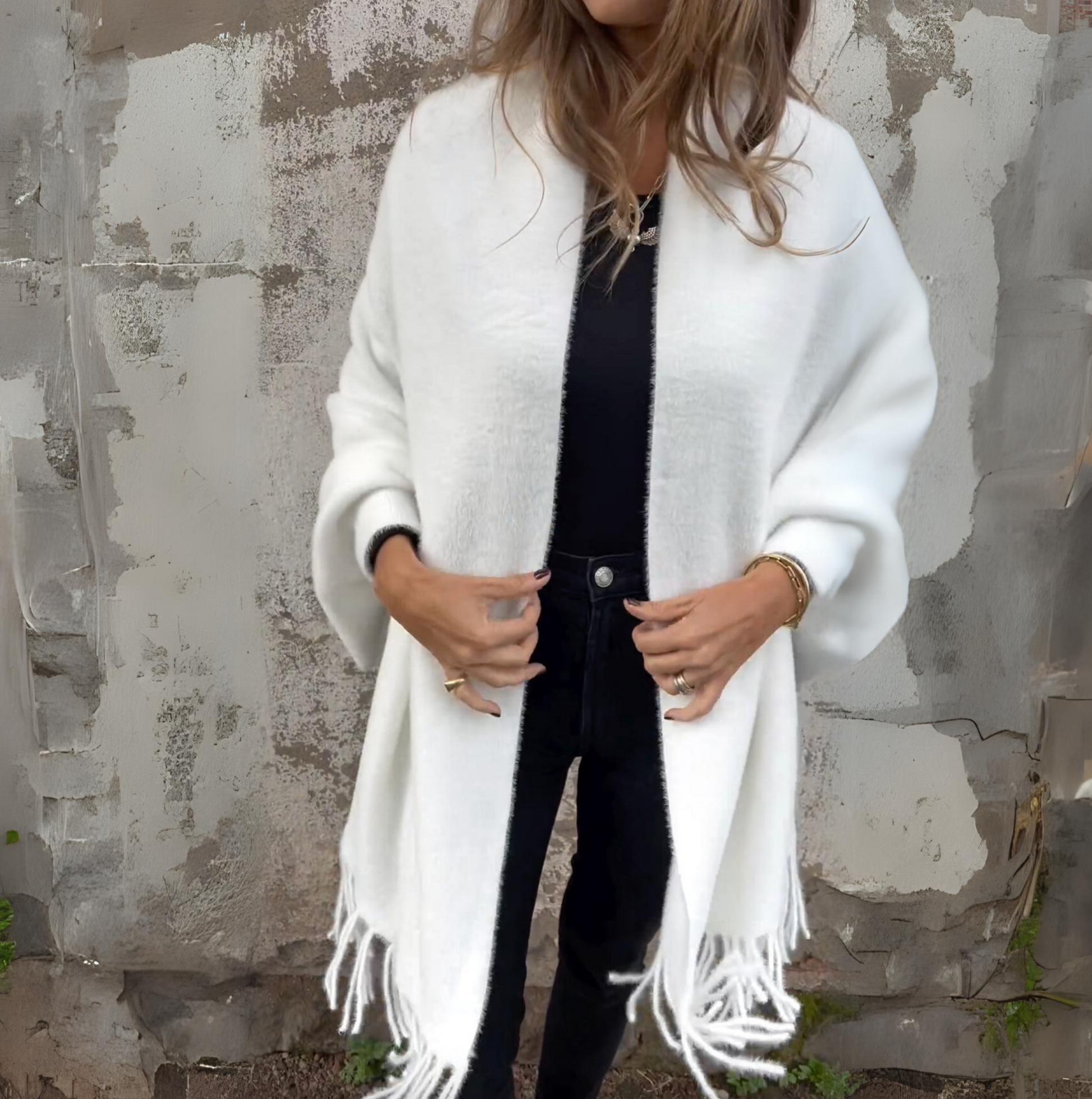Ob für einen eleganten Abend oder einen entspannten Tag – dieser Poncho passt zu jedem Anlass. Die neutralen Farben ermöglichen eine einfache Kombination mit Ihrer bestehenden Garderobe.