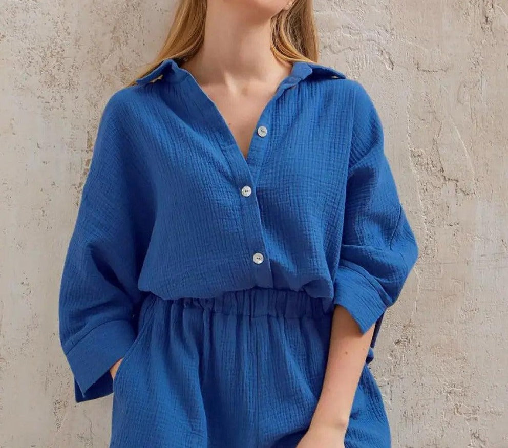 Trendige Kombination für den Alltag: Entdecken Sie den perfekten Mix aus Lässigkeit und Stil mit unserem Hemd-Shorts-Set.