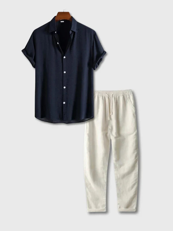 Leinen-Sommer-Set - Cannes bei Nacht: Dieses elegante Set aus hochwertigem Leinen ist ideal für warme Sommerabende. Perfekt für einen stilvollen und entspannten Look.