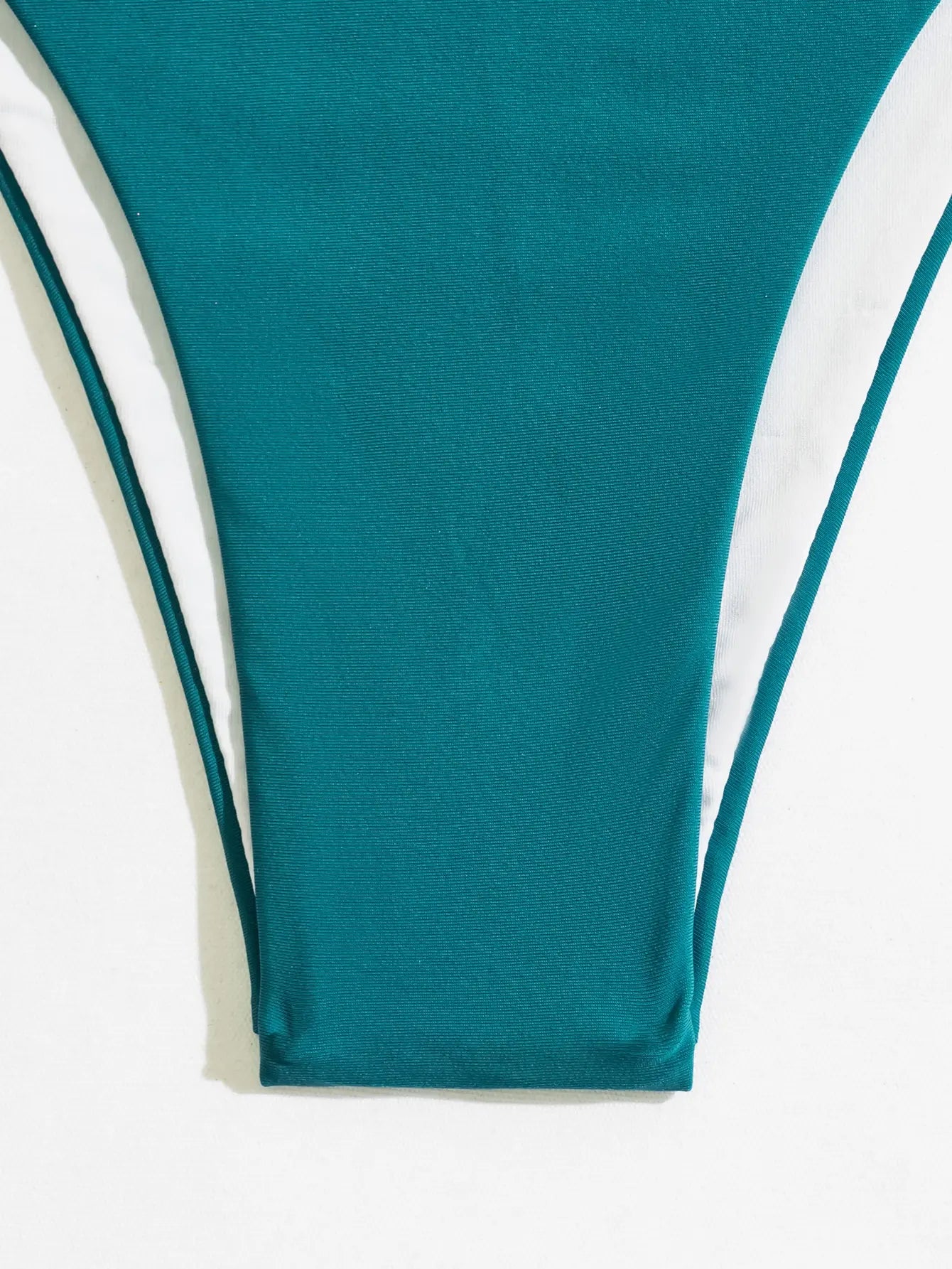 Machen Sie am Strand eine stilvolle Figur mit unserem Livia - Trendigen Türkis Bikini. Dieser auffällige Bikini kombiniert lebendige Farbakzente mit einem tiefen Türkiston, perfekt für modische Sonnenanbeterinnen.