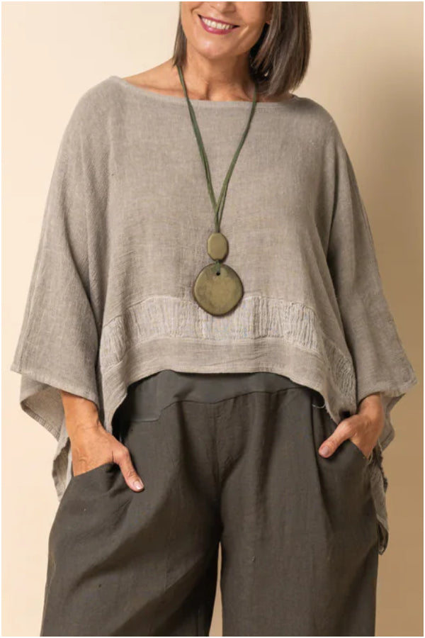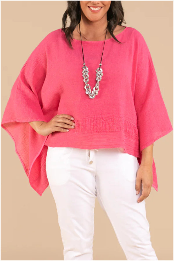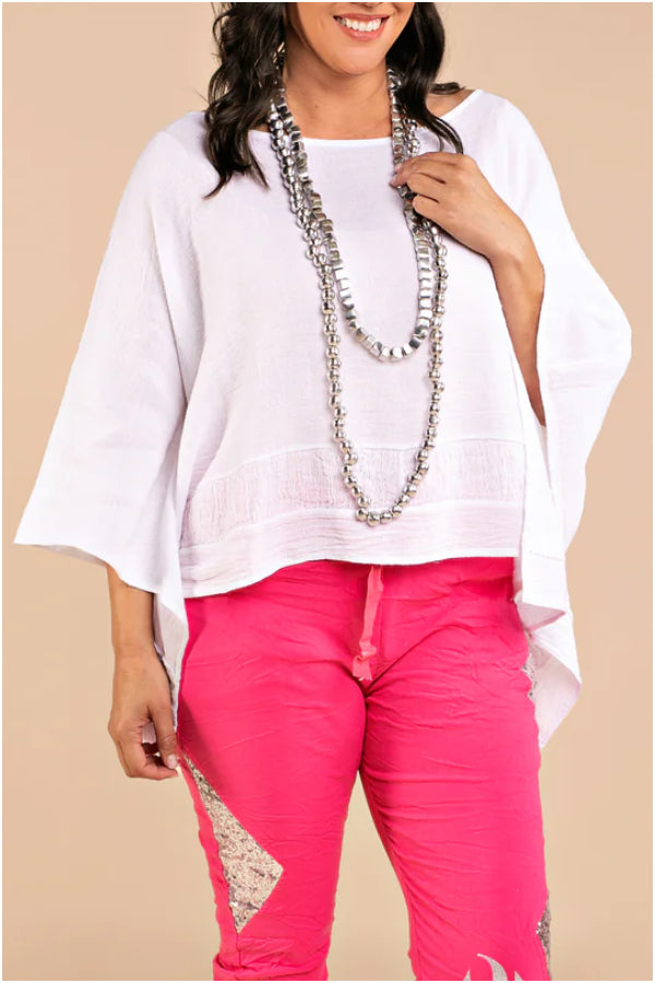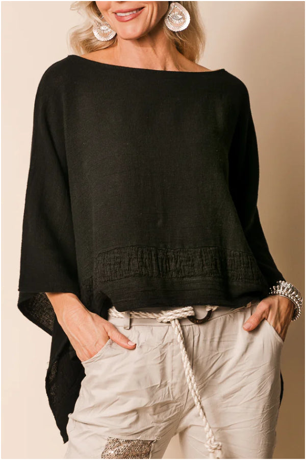 Freiheit in jeder Bewegung – Erleben Sie ein neues Niveau des Komforts mit den weiten Fledermausärmeln unserer Bluse, die Ihnen Freiheit und Stil zugleich bieten.