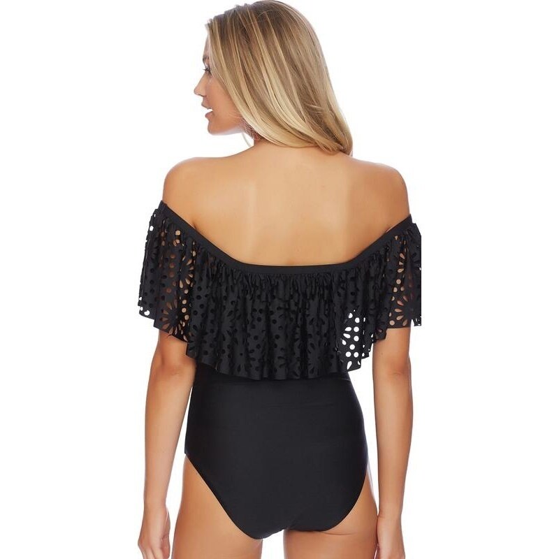 Entdecken Sie "Luisa", einen einteiligen Badeanzug, der Eleganz mit spielerischer Note verbindet. Das feine Lochmuster verleiht diesem Klassiker eine charmante Ausstrahlung, während das zeitlose Schwarz Ihre sommerliche Erscheinung unterstreicht.