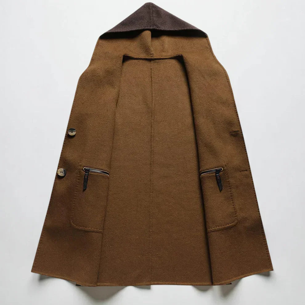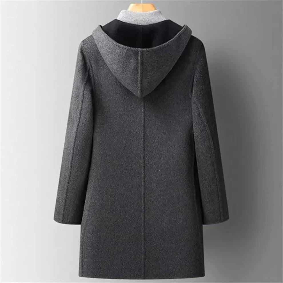 Mit diesem Herren-Wintermantel aus Wollmischgewebe mit Kapuze sind Sie an kalten Tagen stilvoll und geschützt. Er vereint Wärme und Eleganz und bietet eine strukturierte Silhouette sowie angenehmen Tragekomfort für den Alltag. Die Kapuze schützt zuverlässig vor Wind und Kälte, während das klassische Design sowohl zu formellen als auch zu legeren Outfits passt. Ob im Büro, auf Reisen oder bei Winterausflügen – dieser Mantel bietet zeitlosen Stil und zuverlässigen Komfort bei kaltem Wetter.