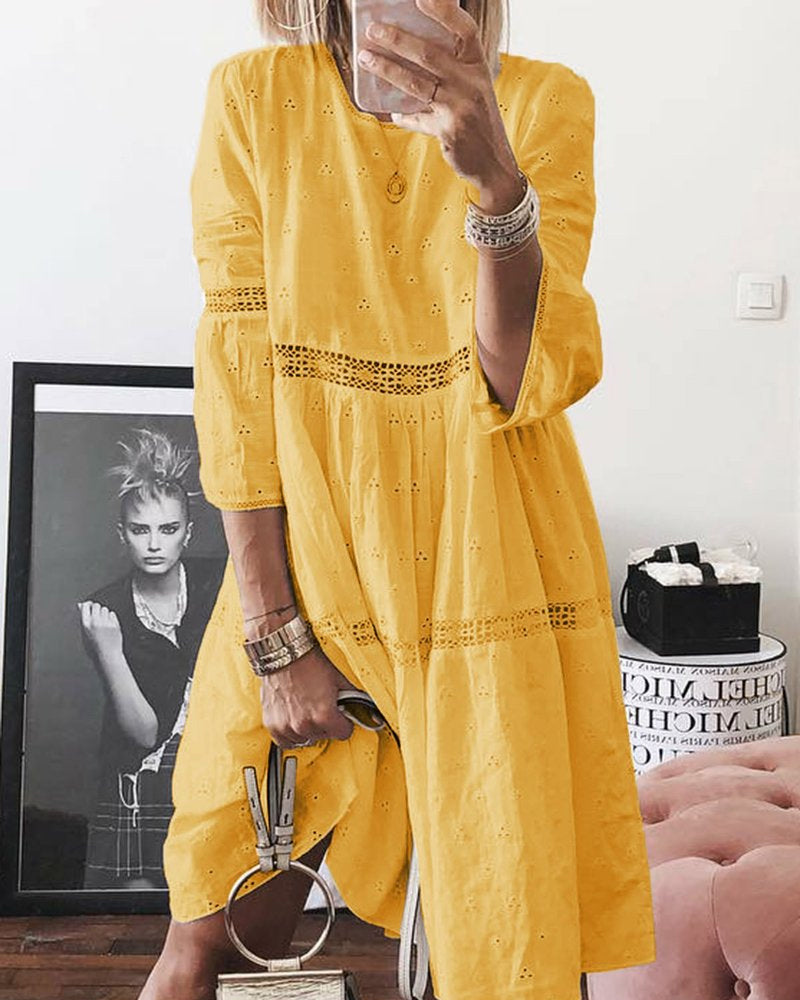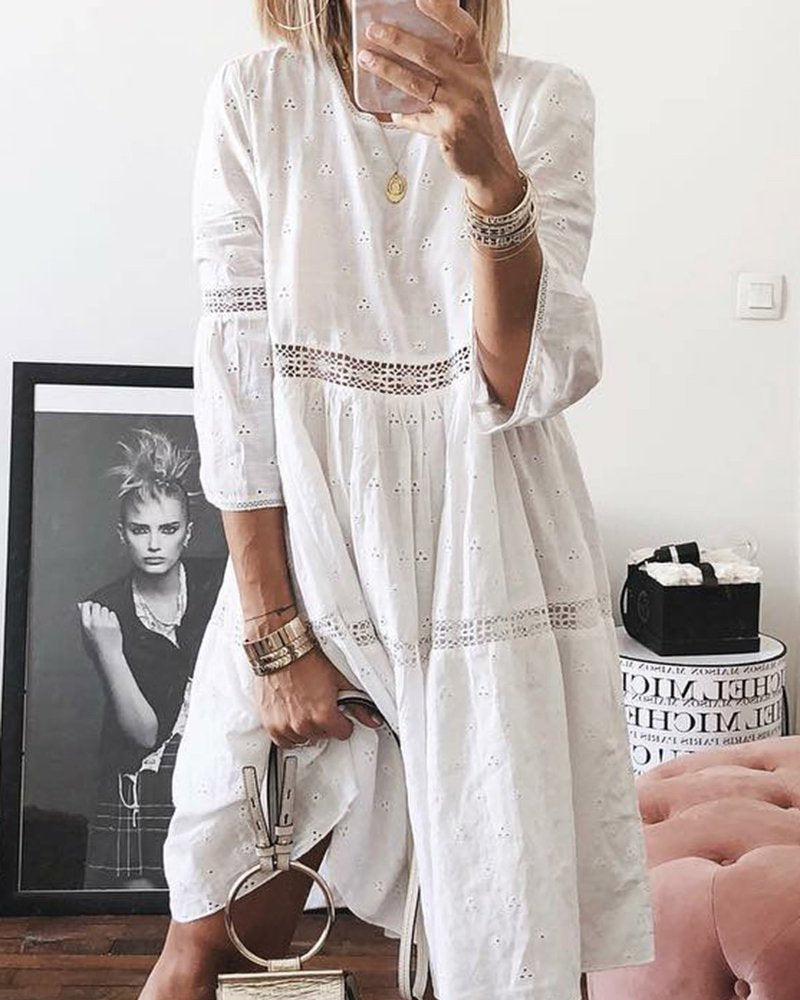 Eleganz trifft Komfort: Mia's Baumwollkleid - Tauchen Sie ein in die Welt des stilvollen Komforts mit unserem eleganten Patchwork-Baumwollkleid. Mia ist das perfekte Zusammenspiel aus schlichter Farbgebung und anspruchsvollem Design, das ein Gefühl von ungezwungener Eleganz vermittelt. Das weiche Baumwollmaterial schmeichelt Ihrer Haut, während das Patchwork-Design für eine unverwechselbare Ästhetik sorgt. Ideal für den Alltag oder besondere Anlässe, wird Mia schnell Ihr Lieblingsstück werden.