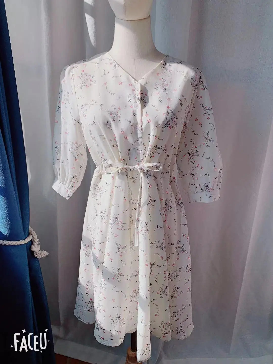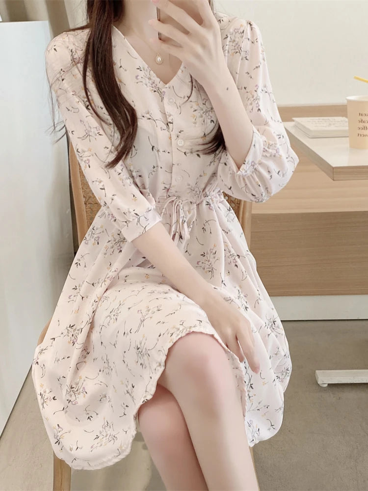 Feminine Anmutung: Die sanften Farbtöne und das Blumendesign geben dem Kleid eine romantische Ausstrahlung. Der Kordelzug ermöglicht eine individuelle Anpassung, sodass Sie jederzeit Ihre ideale Silhouette formen können.