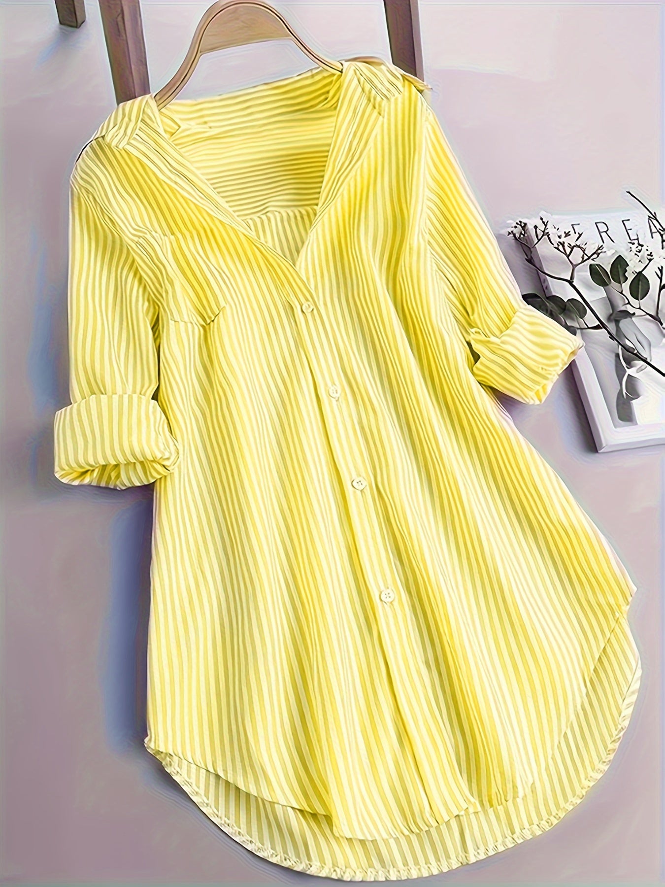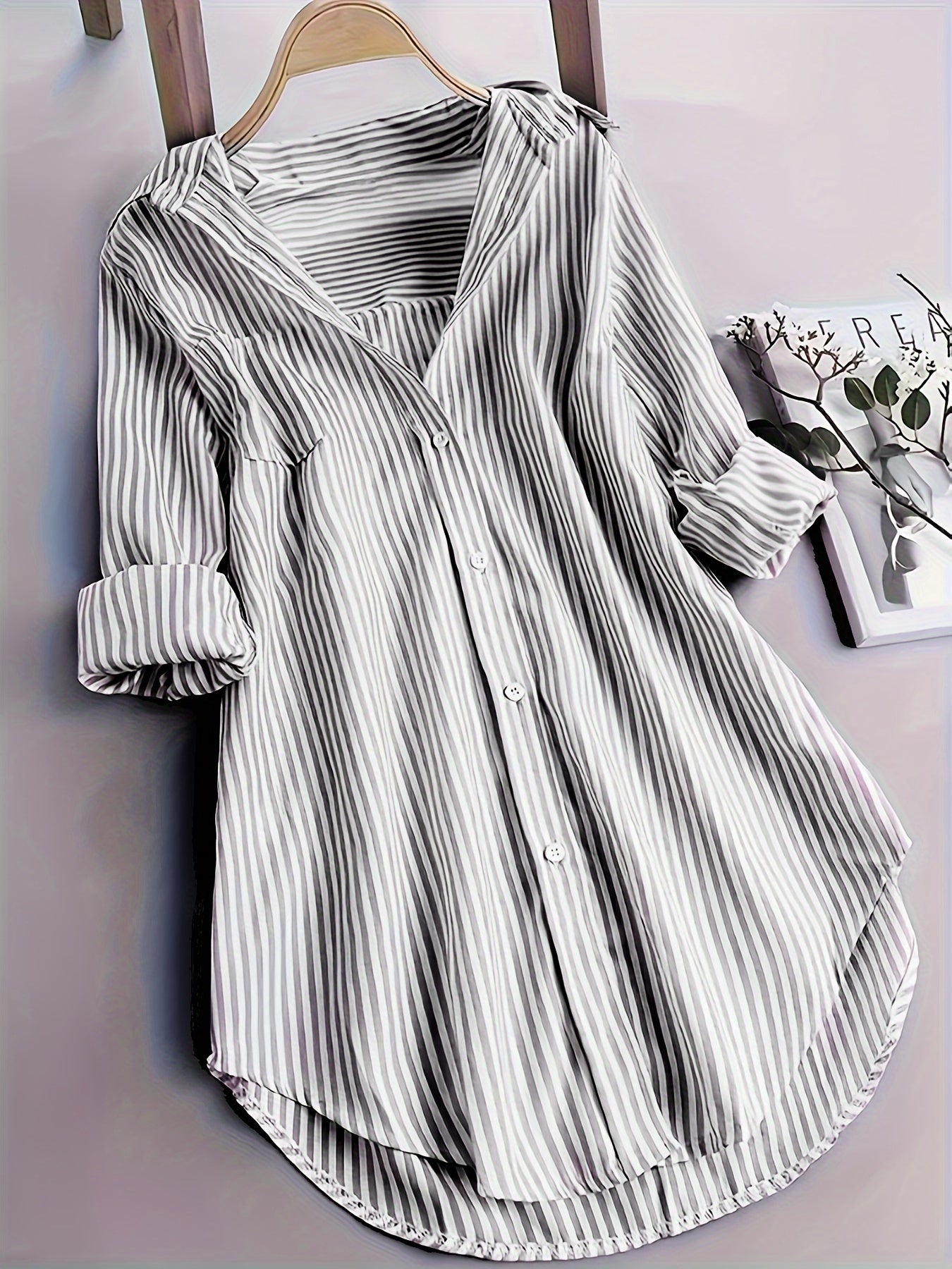 Streifen für einen modernen Look: Das zarte Streifenmuster und die klassische Passform machen diese Bluse zu einem vielseitigen Favoriten. Ob im Büro oder in der Freizeit, sie verleiht Ihrem Outfit immer das gewisse Etwas.