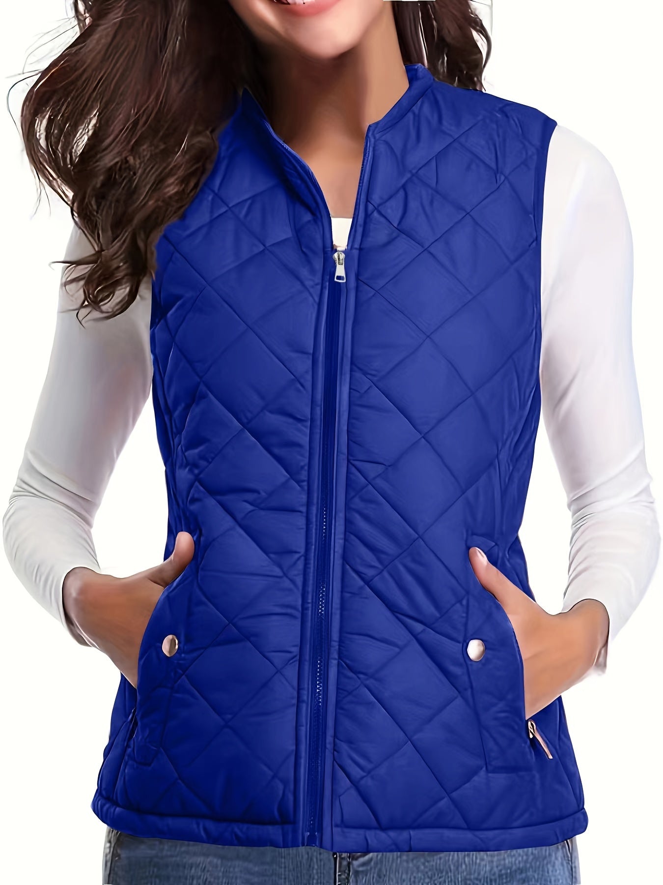 Das gesteppte Design verleiht dieser Weste einen modernen Look, während das ärmellose Design Bewegungsfreiheit und Flexibilität bietet. Die leichte Polsterung sorgt dafür, dass Sie warm bleiben, ohne sich eingeschränkt zu fühlen – ideal für Lagenlooks in der Übergangszeit.