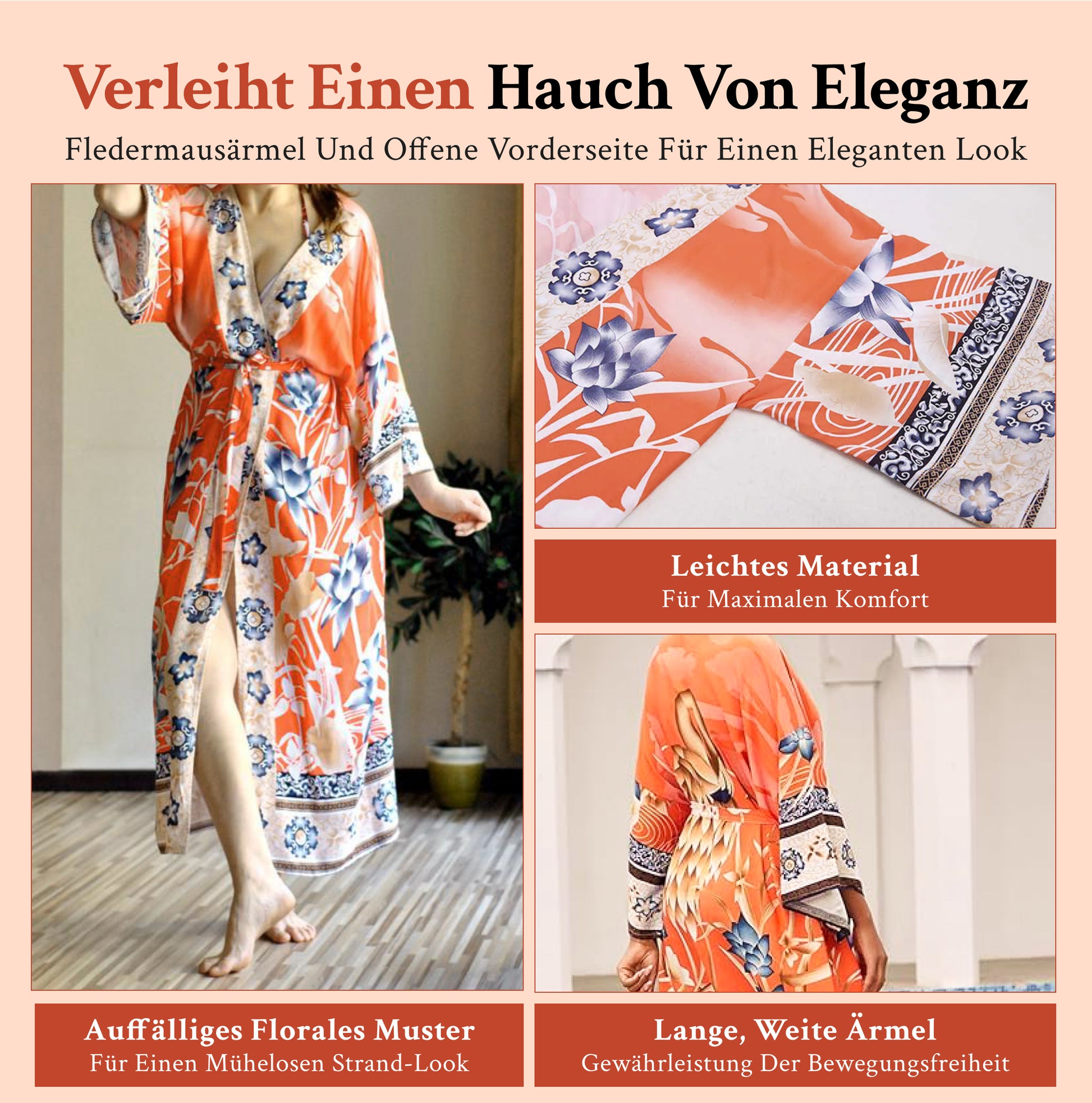 Vielseitig und stilvoll: Tragen Sie diesen Kimono über Ihrem Bikini oder Badeanzug für einen mühelosen Strand-Look, oder kombinieren Sie ihn mit Shorts und einem Top für ein entspanntes Sommeroutfit. Die langen, weiten Ärmel und der offene Schnitt sorgen für Bewegungsfreiheit und Komfort.