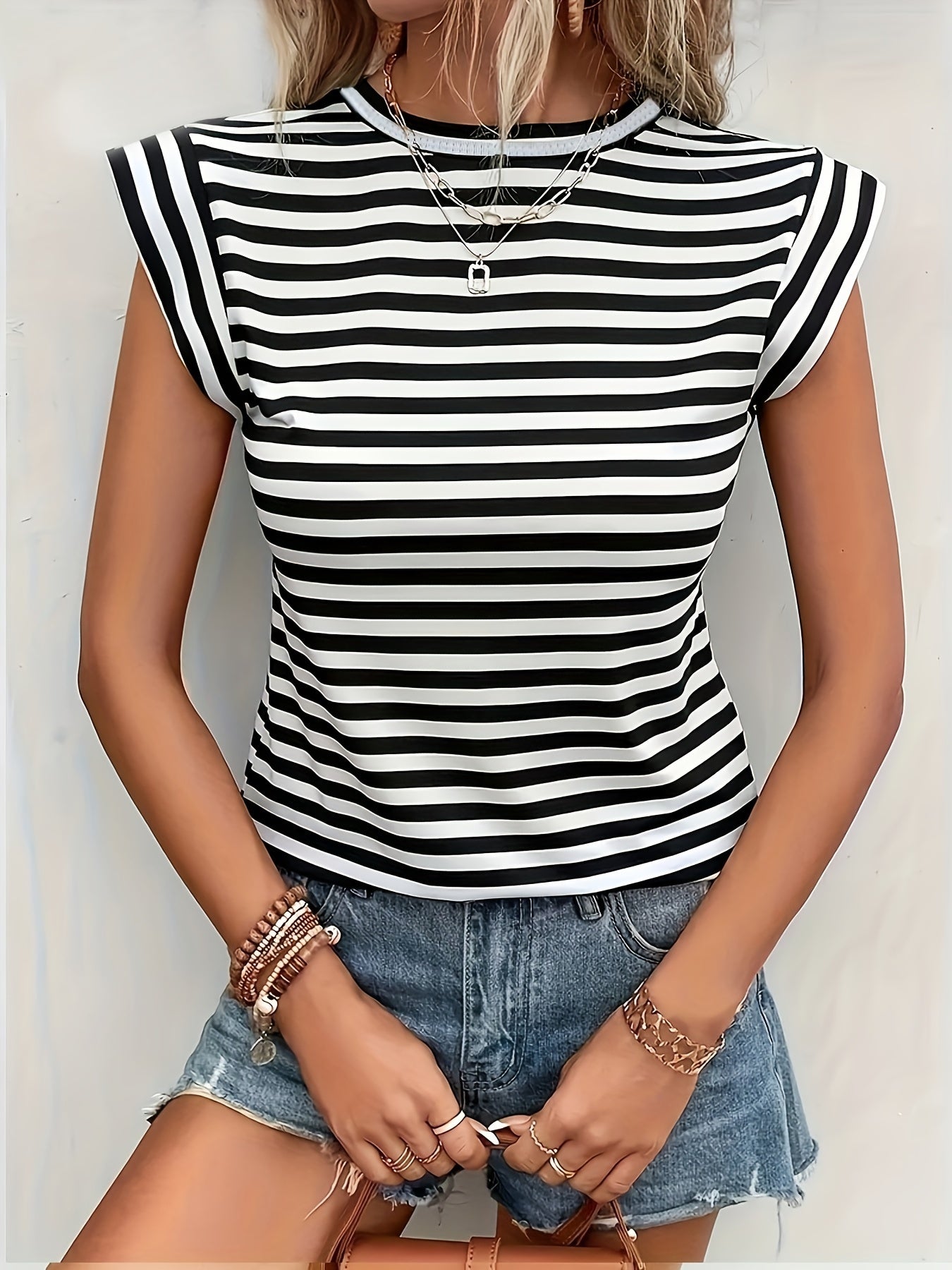 Eleganz und Komfort in einem. Die Bluse zeichnet sich durch ihren fließenden Schnitt und das atmungsaktive Material aus, das auch an heißen Tagen für Komfort sorgt. Ihr zeitloses Streifenmuster macht sie zu einem vielseitigen Begleiter für zahlreiche Anlässe.