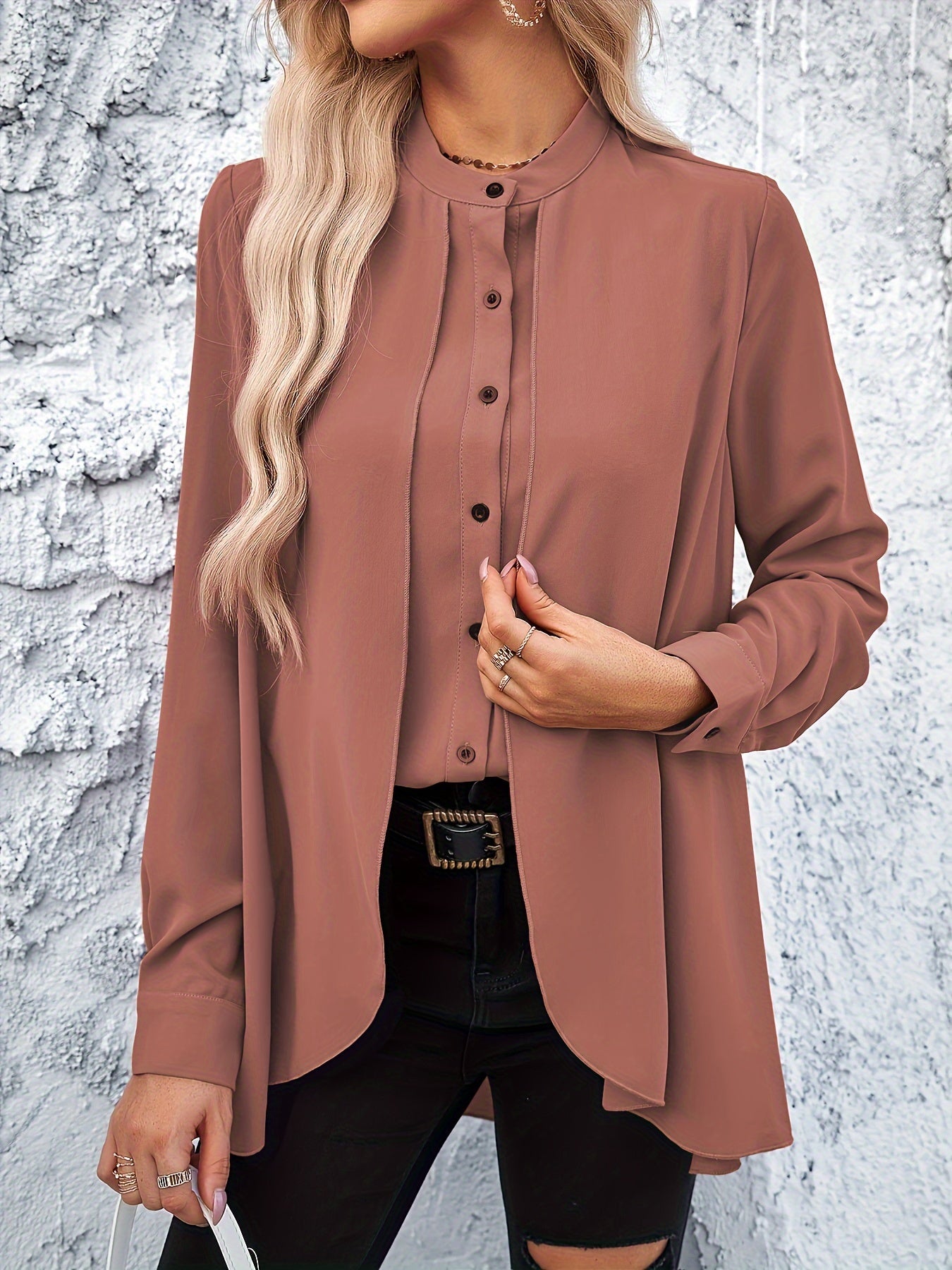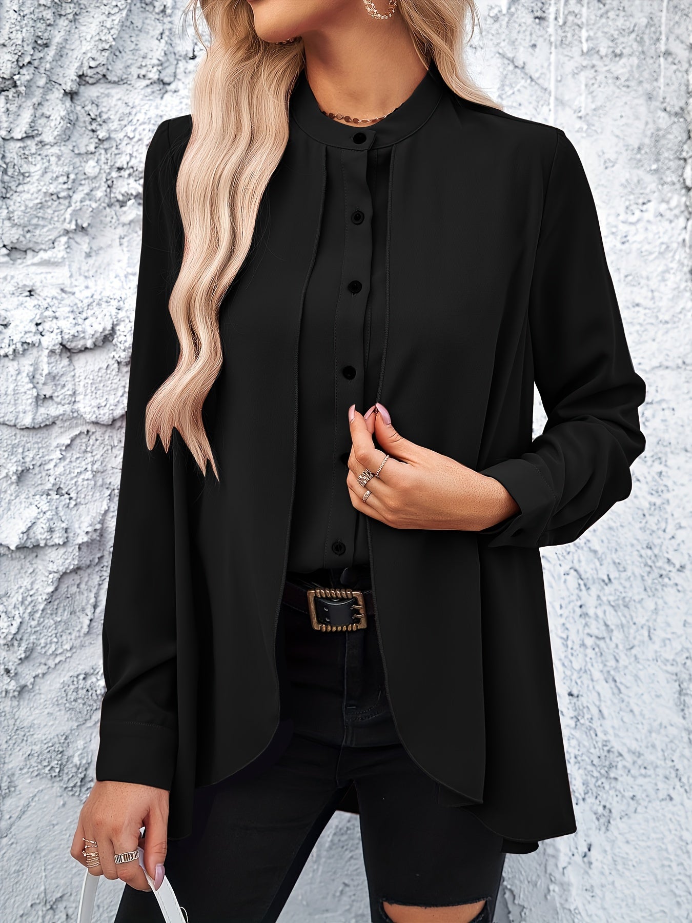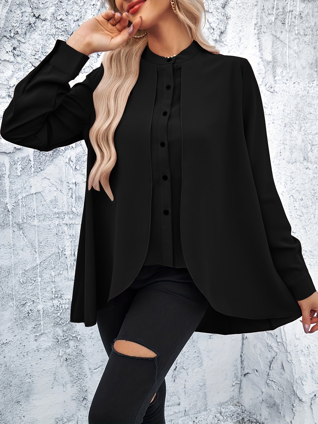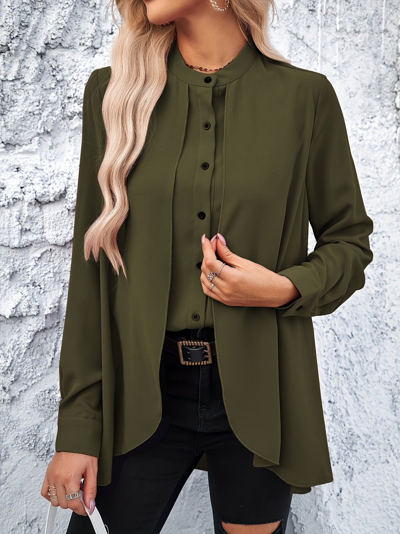 - Stehkragen und verdeckte Knopfleiste für eine raffinierte Note