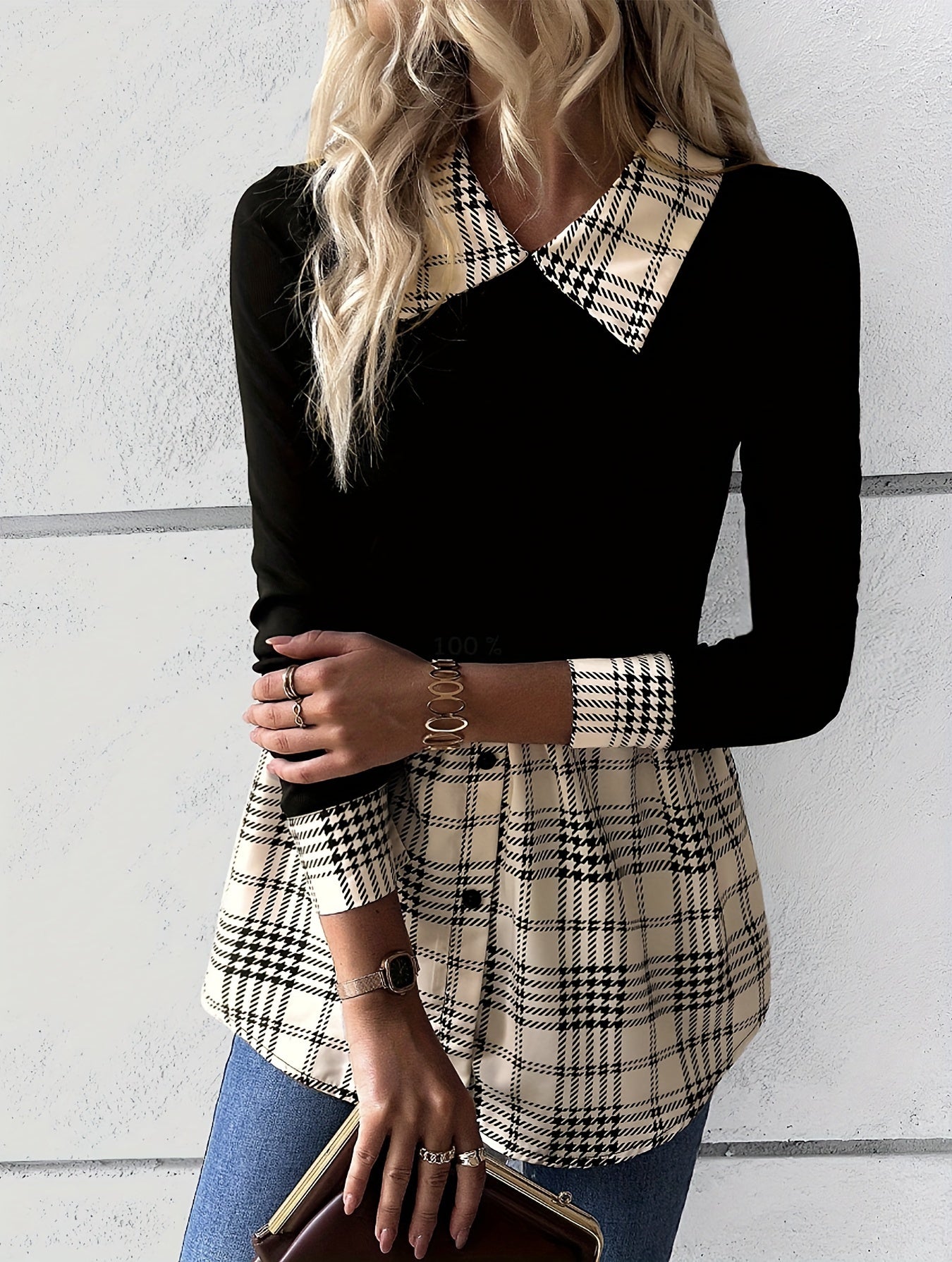 - Klassischer Kragen und karierte Details für eine elegante Note