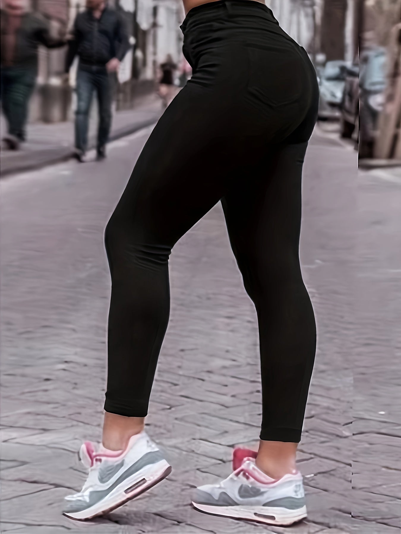 Schmeichelhaftes Design mit hoher Taille: Der weiche und dennoch strapazierfähige Denimstoff sorgt für ein angenehmes Tragegefühl, selbst an langen Tagen. Die hohe Taille und der enge Schnitt bieten eine schmeichelhafte Silhouette, während die klassische schwarze Farbe für einen zeitlosen und vielseitigen Look sorgt