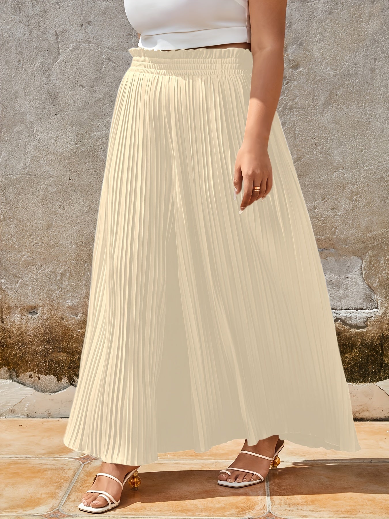 Stilvoll und anpassungsfähig: Der fein plissierte Stoff fällt sanft und schmeichelt jeder Figur, während der flexible Bund maximalen Komfort bietet. Dieser Rock lässt sich mühelos sowohl für formelle Anlässe als auch für lässige Outfits stylen.
