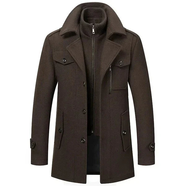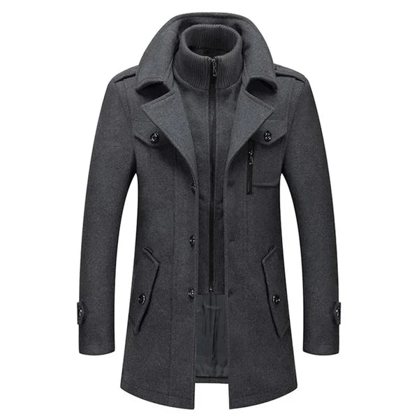 Gefertigt aus einer luxuriösen Wollmischung, bietet dieser Mantel eine hervorragende Wärmeisolierung, ohne Kompromisse beim Stil einzugehen. Der zweiteilige Aufbau sorgt für zusätzliche Vielseitigkeit und ermöglicht Ihnen, den Mantel nach Bedarf anzupassen.