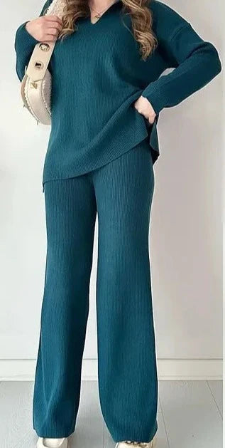 Perfekte Passform für mühelosen Stil. Das Set besteht aus einem lockeren Oberteil und weit geschnittenen Hosen, die eine elegante und gleichzeitig entspannte Silhouette schaffen. Das weiche Material sorgt für maximalen Komfort und Bewegungsfreiheit den ganzen Tag.