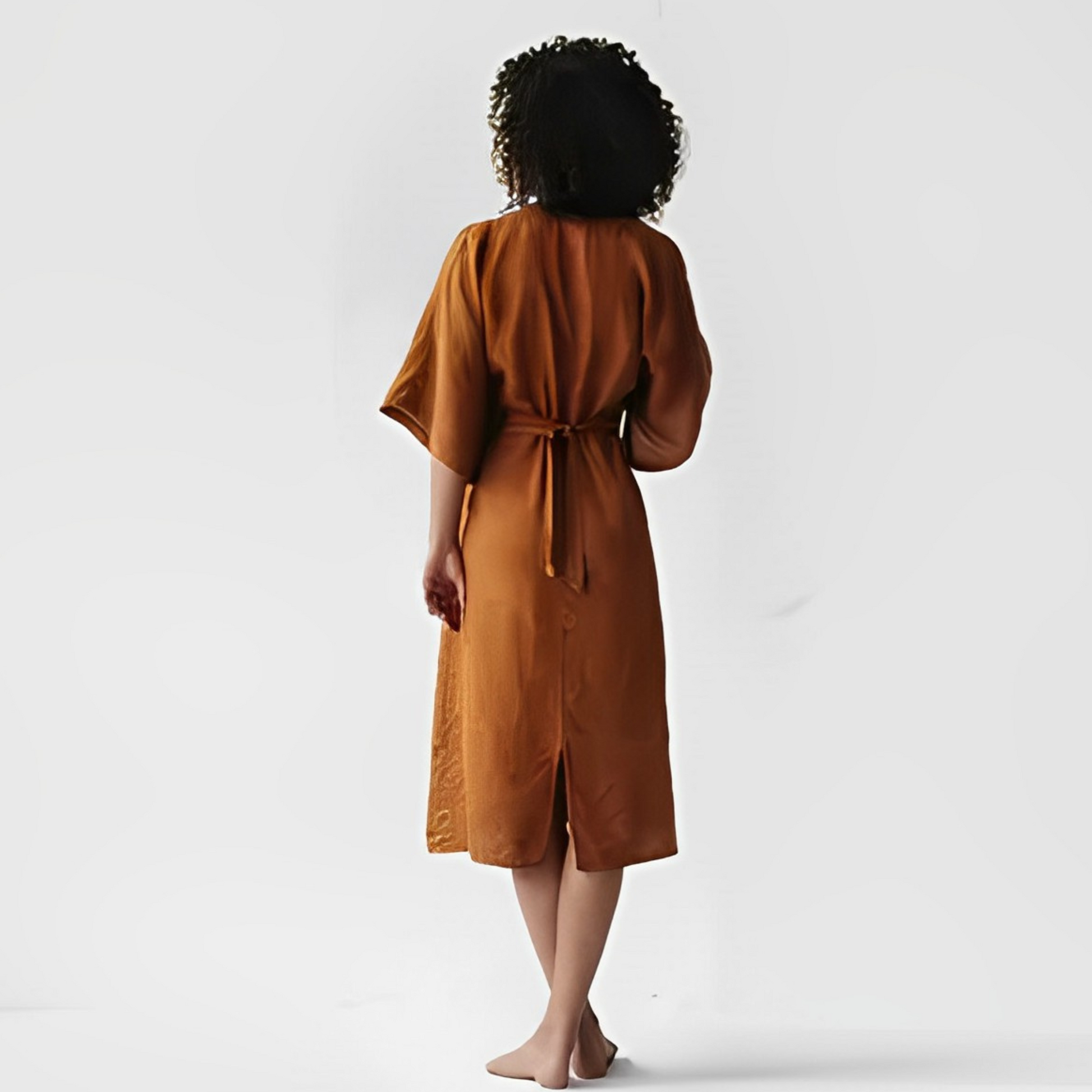 Eleganz in jedem Detail. Die kimonoähnlichen Ärmel und die fein fließende Linie des Kleides unterstreichen Ihre natürliche Grazie, während die Taillenbetonung Ihre Silhouette formt. Ein Kleid, das bei jeder Bewegung die Blicke auf sich zieht. Ein Kleid, das sowohl für das Büro als auch für den geselligen Abend ausgelegt ist und stets eine souveräne Ausstrahlung garantiert.