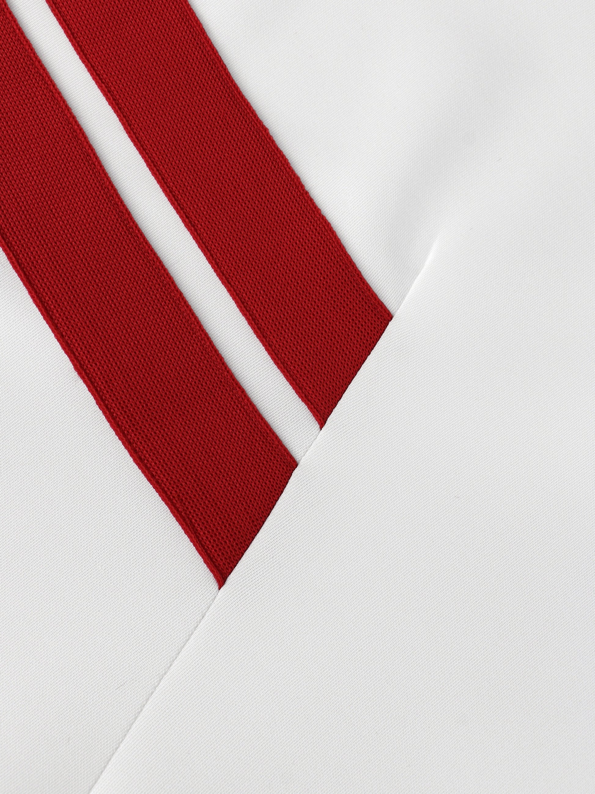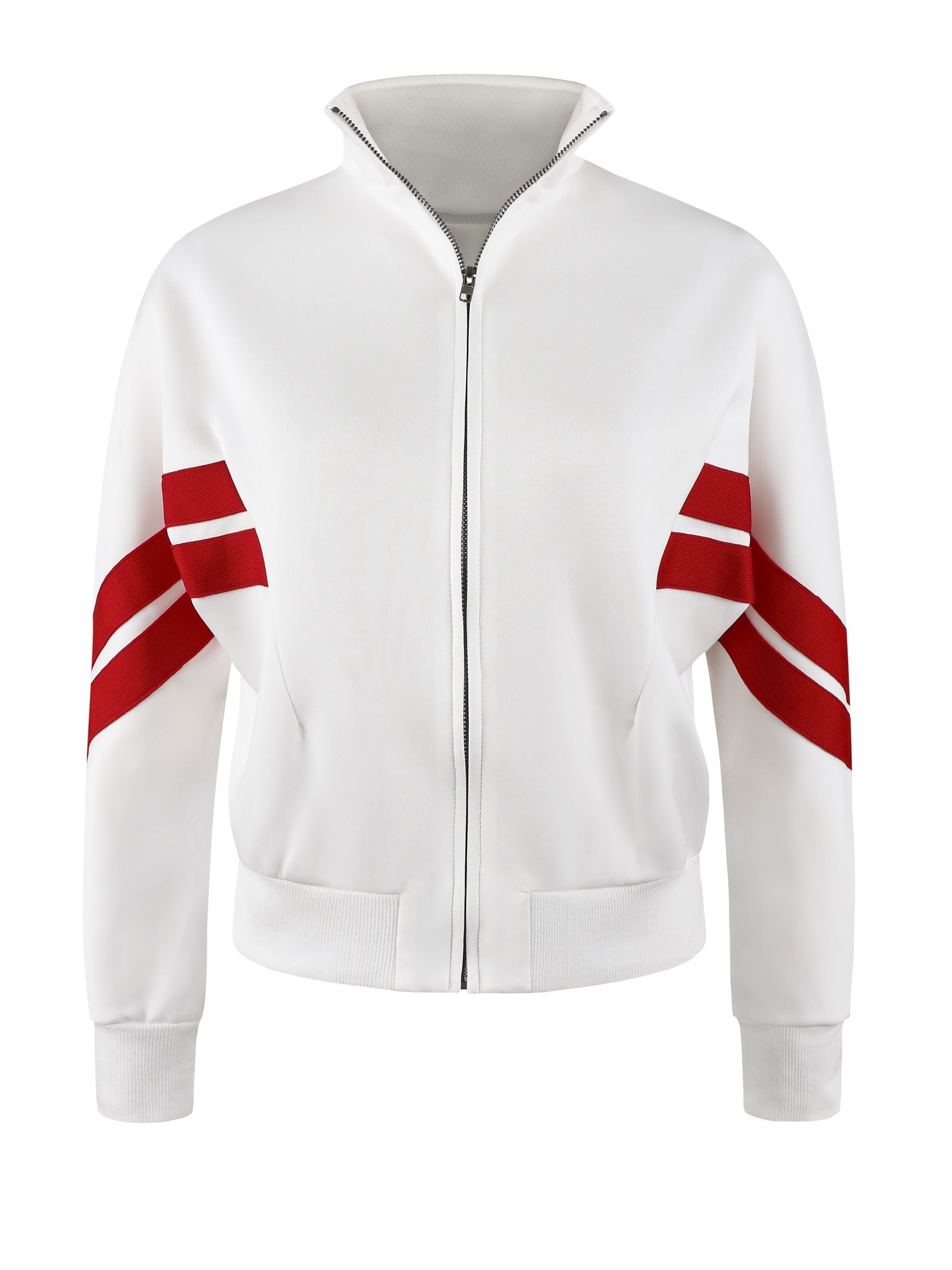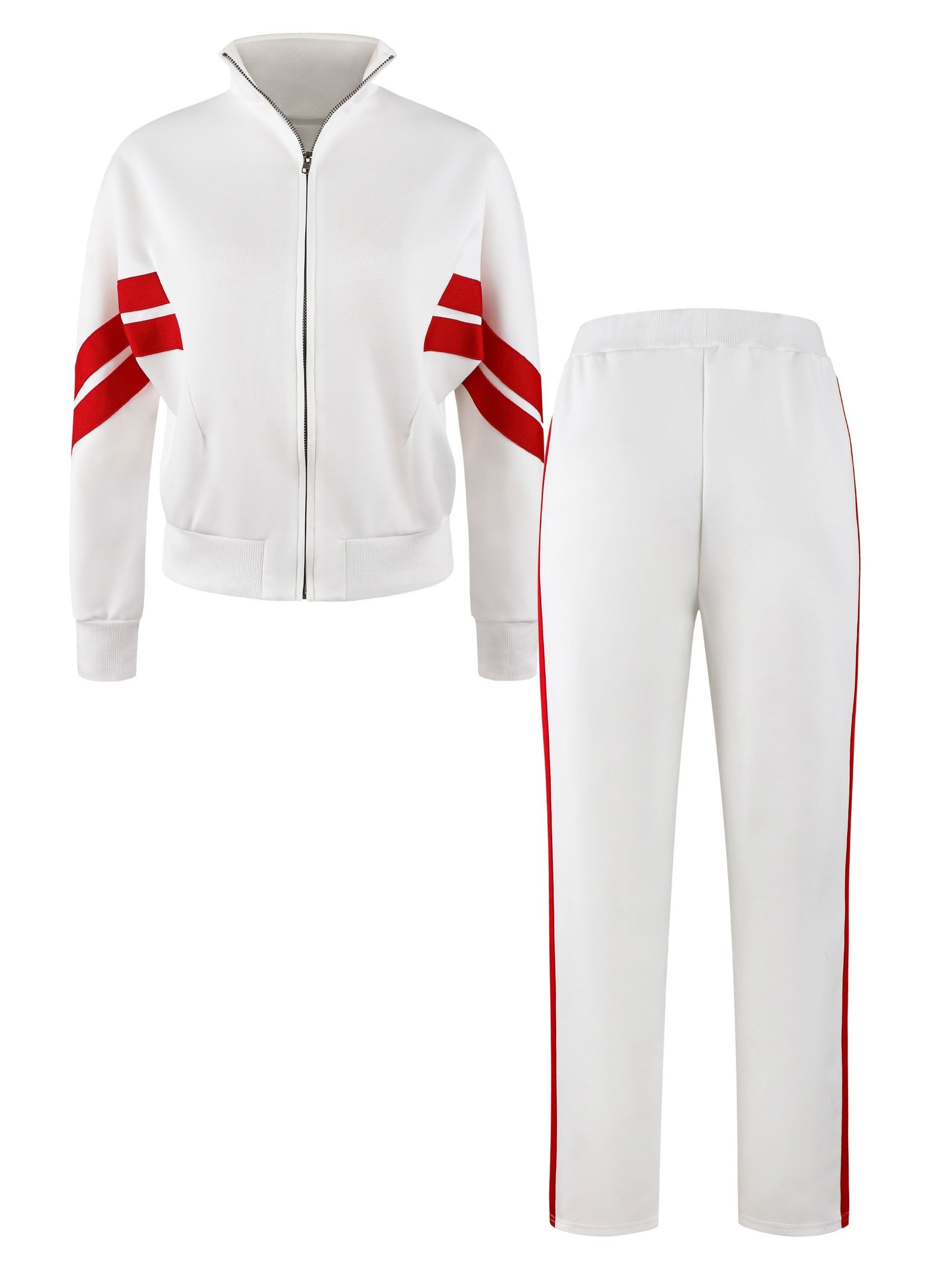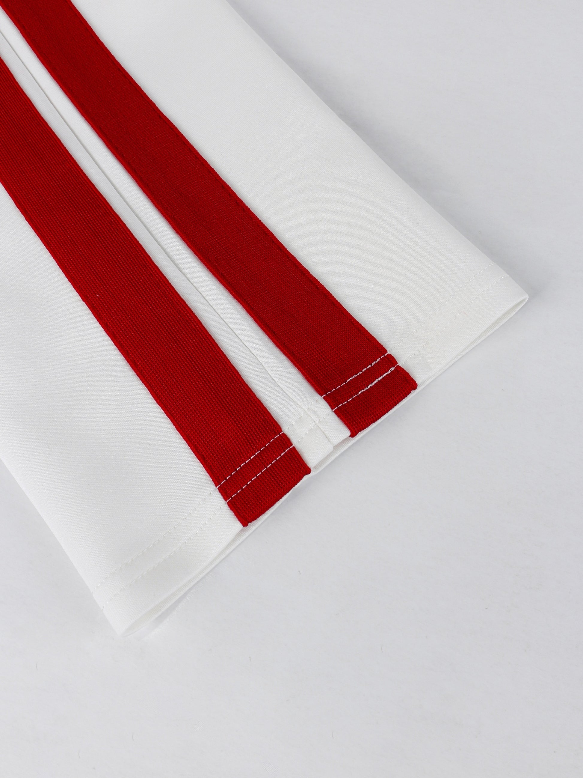 Sportlicher Chic – Weißer Zweiteiler mit roten Streifen