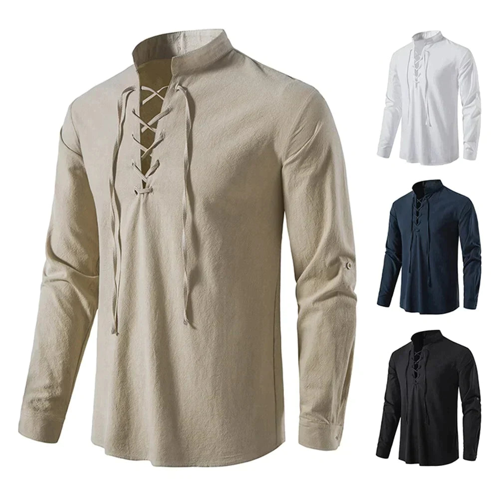 Stilvolles Herrenhemd mit Schnürkragen und langen Ärmeln