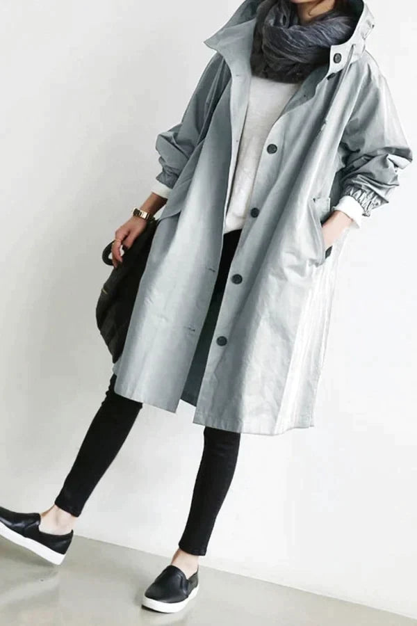 Treten Sie mit dem 'UrbanShield Trendsetter Oversized Regenmantel' selbstbewusst nach draußen, der Inbegriff von Mode und Funktionalität für den wetterbewussten Verbraucher. Dieser Regenmantel ist mit Liebe zum Detail entworfen und aus hochwertigem, leichtem Material gefertigt, das wasserabweisenden Schutz bietet, ohne an Komfort einzubüßen. Die großzügig übergroße Passform ermöglicht es Ihnen, ihn über jeder Kleidung zu tragen, während die raffinierten Features wie maßgeschneiderte Knöpfe, ein verstellbarer Kordelzug an der Kapuze und elastische Bündchen an den Handgelenken die praktische Anwendbarkeit erhöhen. Mit dem UrbanShield Trendsetter sind Sie nicht nur vor Regen geschützt - Sie setzen auch ein modisches Statement