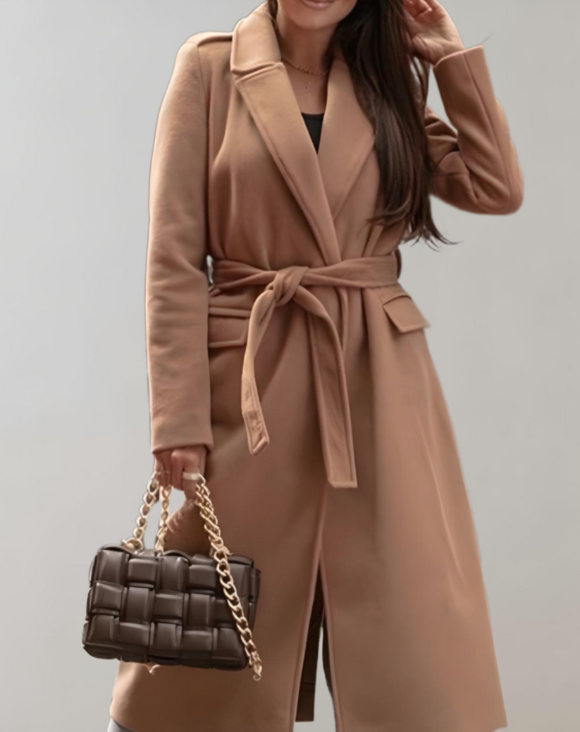 Venita | langer mantel mit seitentaschen und reibverschluss