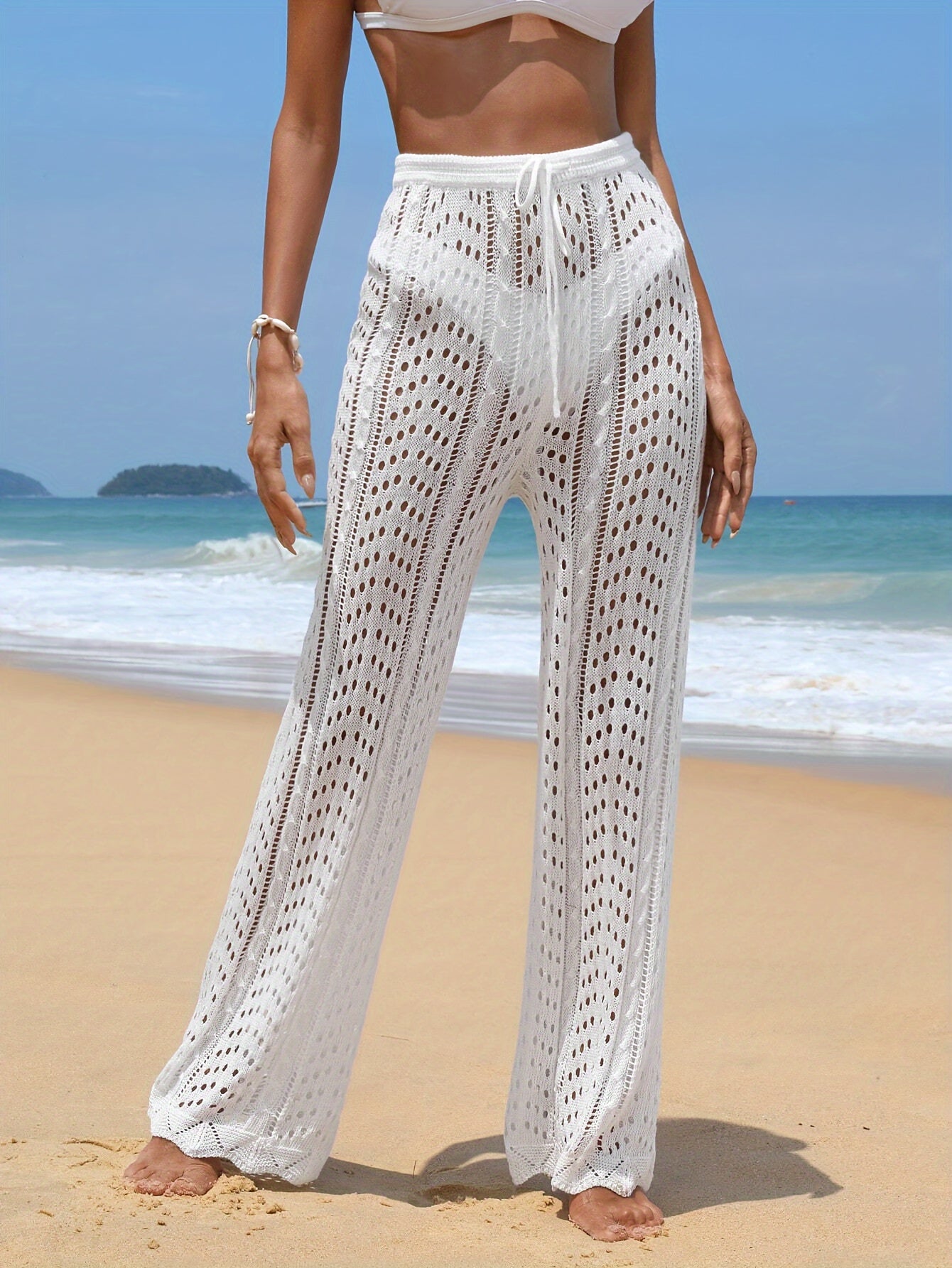Mit ihrem zarten Häkelmuster und dem klassischen weißen Design verleiht diese Hose jedem Outfit eine sommerliche Note. Ob bei einem Strandspaziergang, einem Picknick im Park oder einem entspannten Tag zu Hause, diese Hose ist die perfekte Ergänzung für einen stilvollen und komfortablen Look.